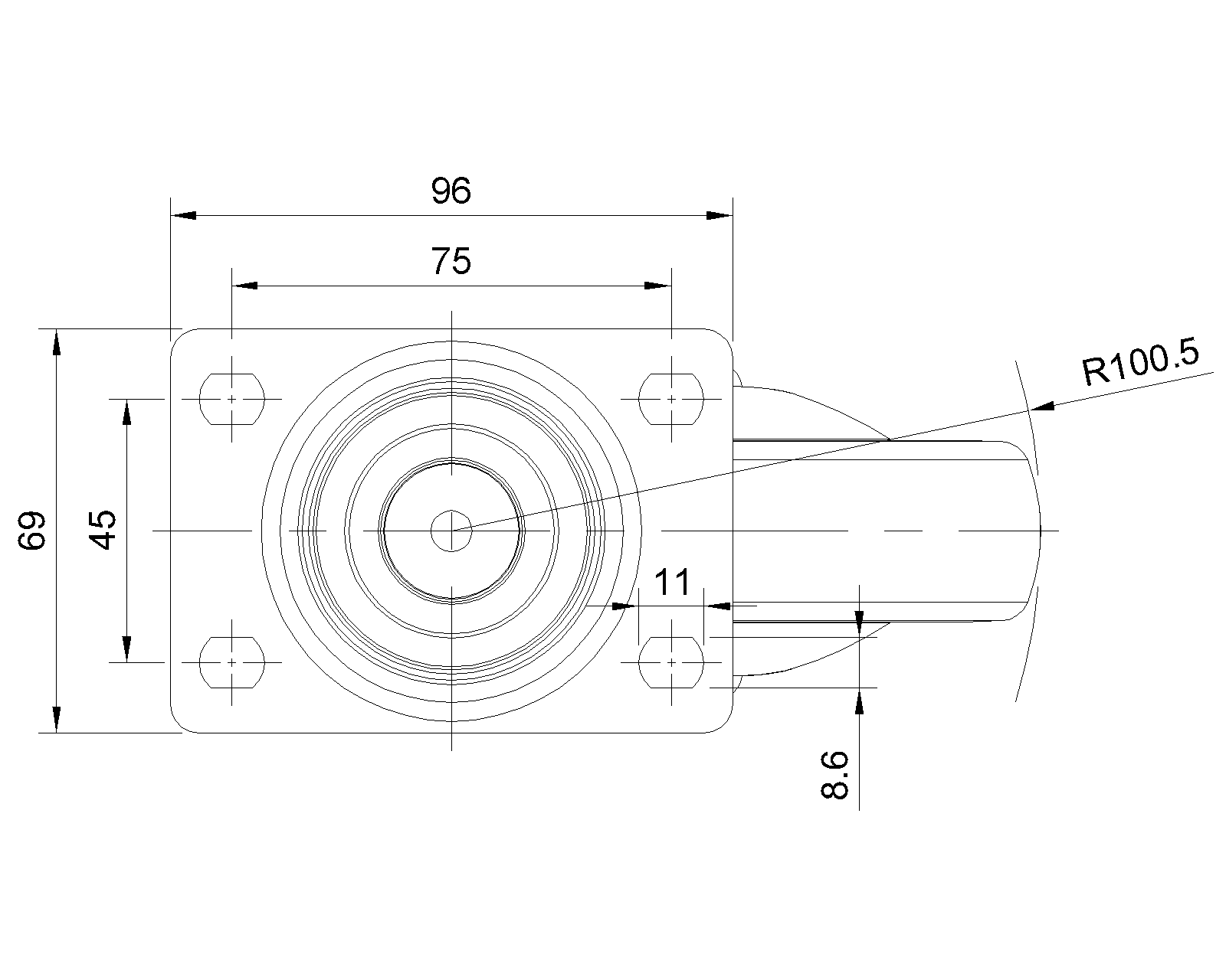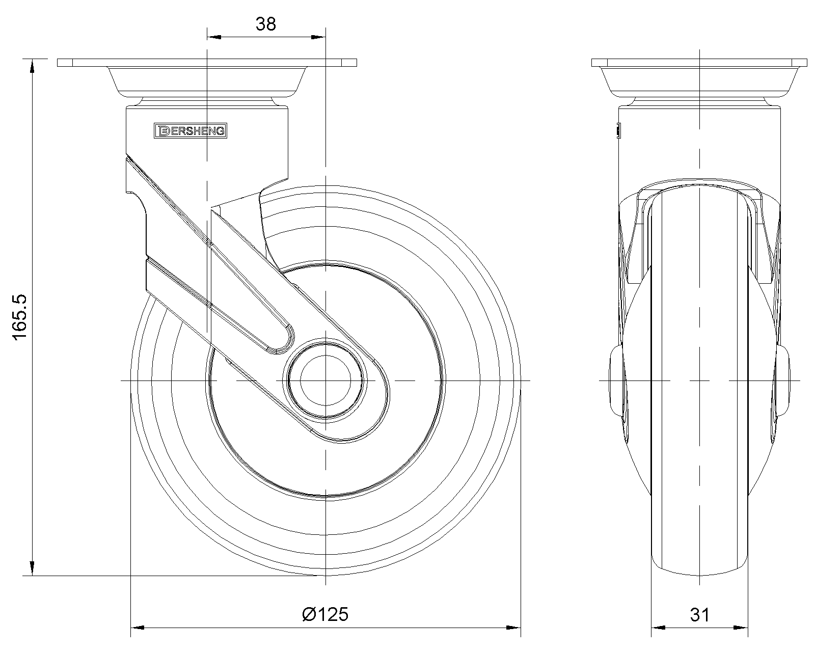 | PPR Bánh xe (đen) Đường kính bánh xe × Chiều rộng bánh xe 125 x 31mm |