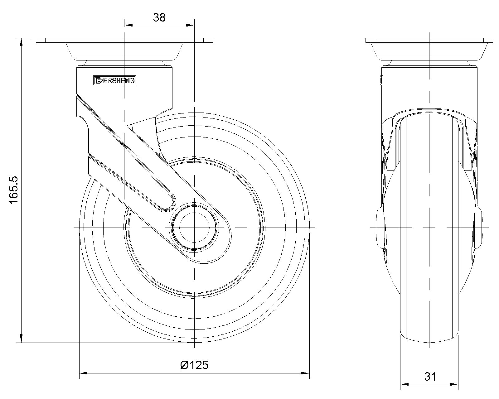 | PPR Bánh xe (loại ống trung bình) (đen đen) Đường kính bánh xe × Chiều rộng bánh xe 125 x 31mm |
