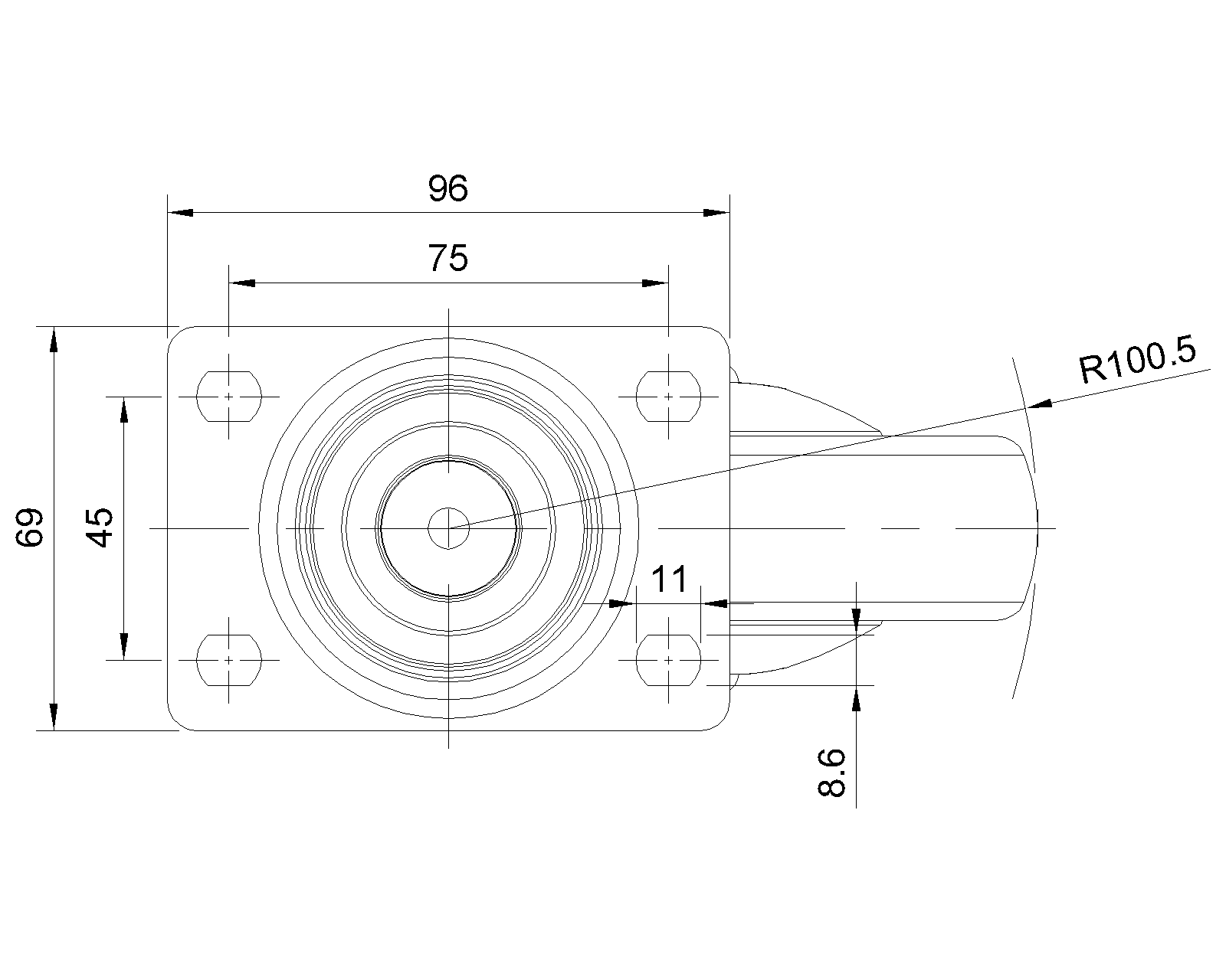 Bánh xe thật, đế cao cấp—đế góc đục lỗ 75x45 Chân đen gia cố bằng polyamide, lắp đế Chống gỉ, chống ăn mòn, thẩm mỹ, tiết kiệm và cho phép xoay trơn tru Lõi bánh xe bằng polypropylene chống va đập, bề mặt bánh xe bằng nhựa nhiệt dẻo đàn hồi (TPR) Bánh xe màu đen—loại ống giữa |