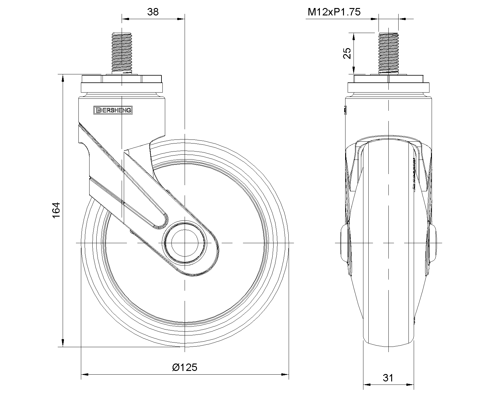 Bánh xe thật, ren M12x25 Bánh xe màu đen gia cố bằng polyamide, lắp ren Chống gỉ, chống ăn mòn, thẩm mỹ, tiết kiệm và xoay linh hoạt Lõi bánh xe bằng polypropylene chống va đập, bề mặt bánh xe bằng nhựa nhiệt dẻo đàn hồi (TPR) Bánh xe ống giữa màu đen |
