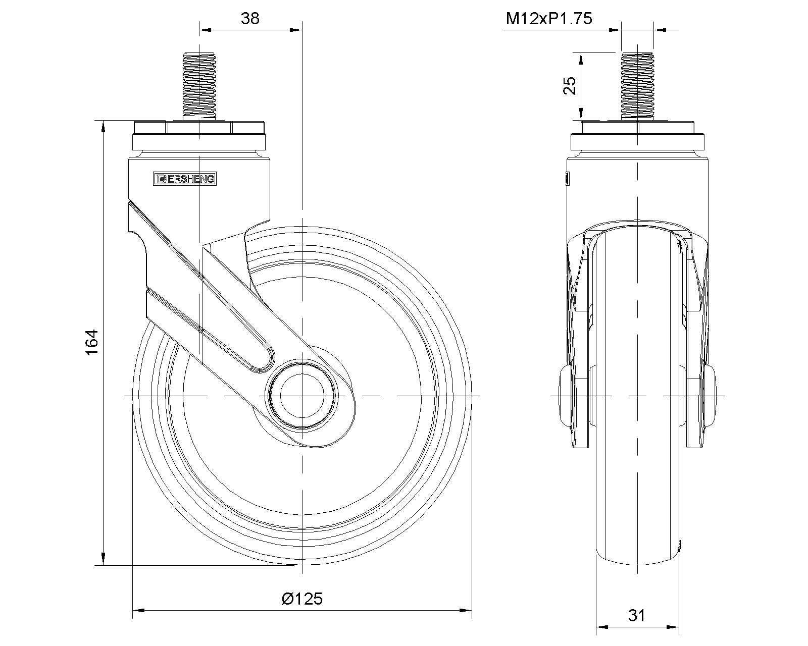 Bánh xe thật, ren M12x25 Bánh xe màu đen gia cố bằng polyamide, lắp ren Chống gỉ, chống ăn mòn, thẩm mỹ, tiết kiệm và xoay linh hoạt Lõi bánh xe bằng polypropylene chống va đập, bề mặt bánh xe bằng nhựa nhiệt dẻo đàn hồi (TPR) Bánh xe ống giữa màu đen |