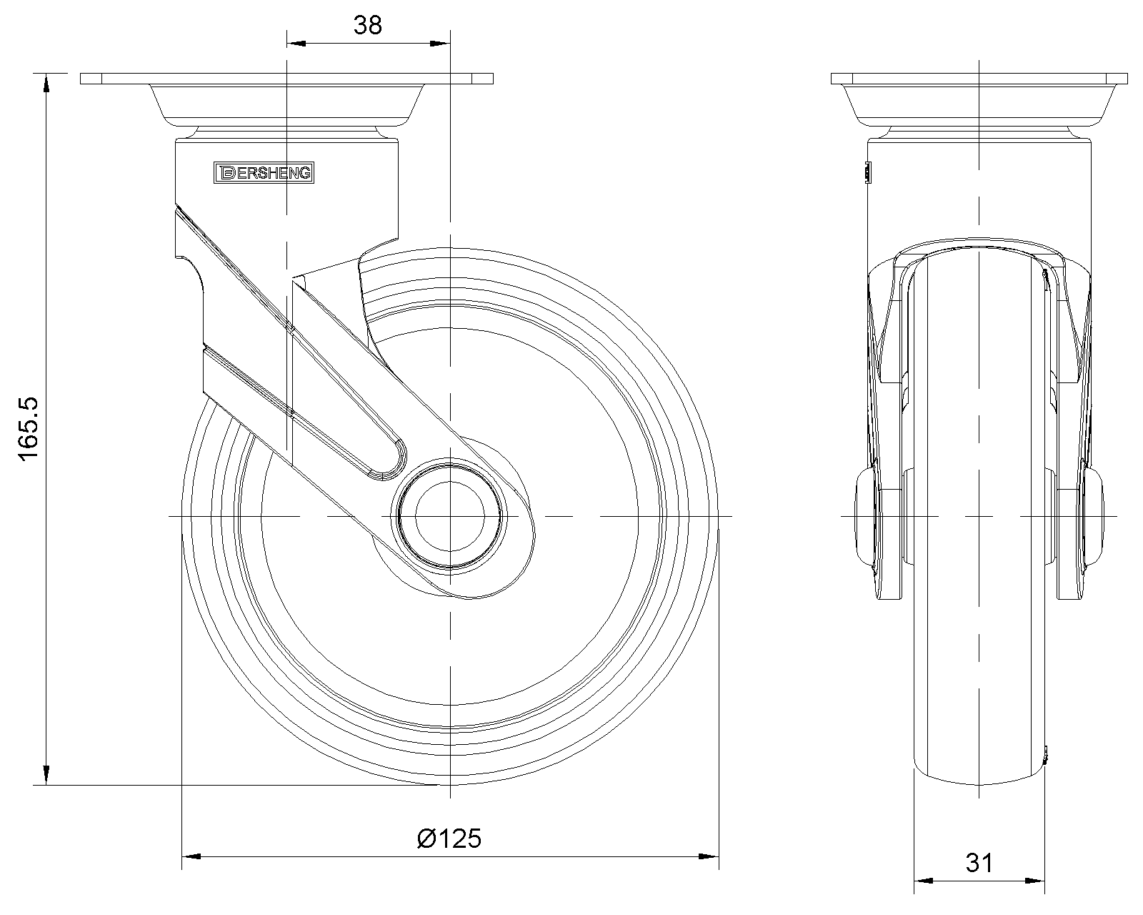| Cổ điển PPR Bánh xe (đen đen - ống trung bình rộng 37) Đường kính bánh xe × chiều rộng bánh xe 125 |