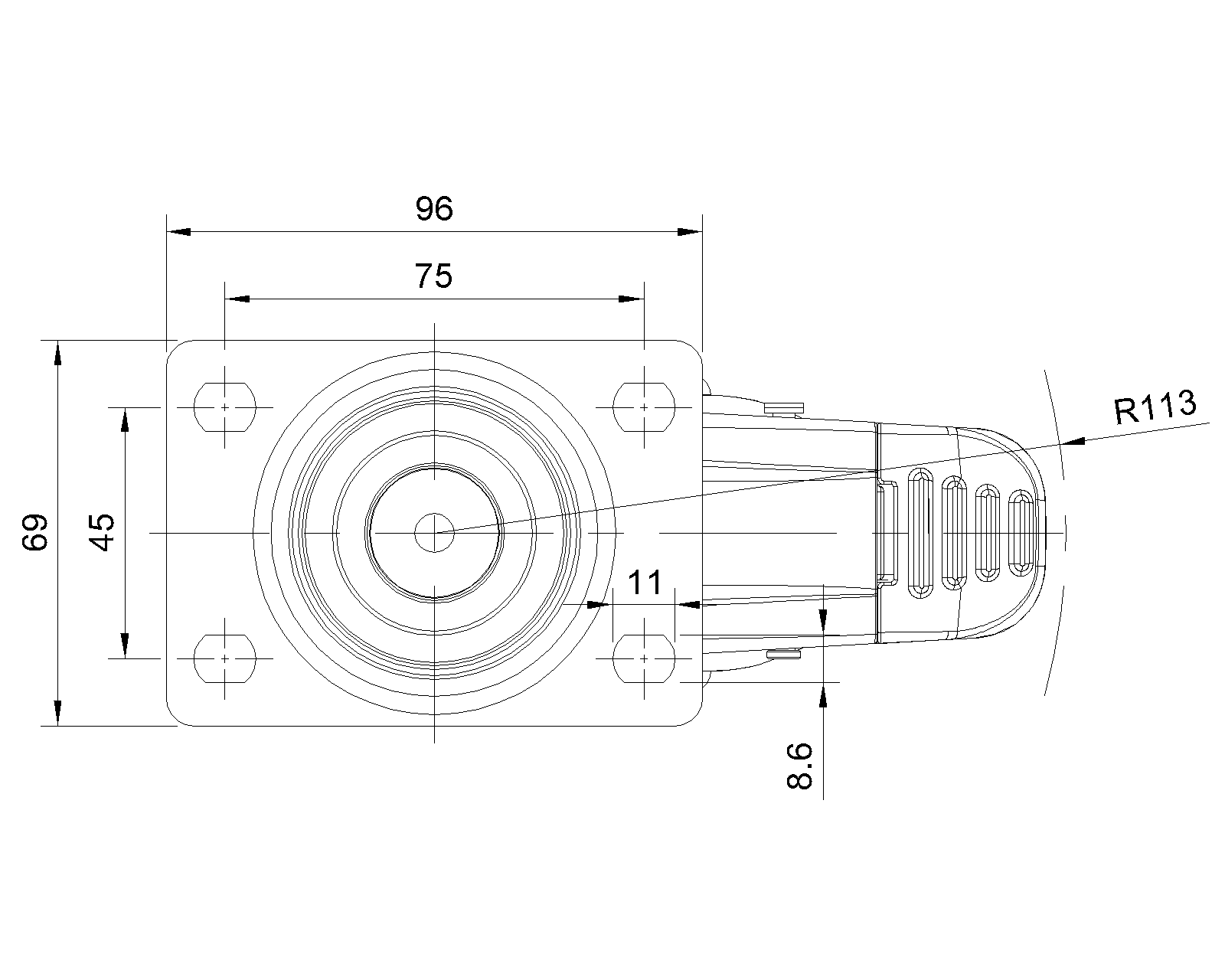 Bánh xe có hệ thống khóa phanh kép, đế lỗ góc 75x45 Chân màu đen làm bằng vật liệu gia cố polyamide, lắp đế Chống gỉ, chống ăn mòn, thẩm mỹ, tiết kiệm và xoay linh hoạt Lõi bánh xe bằng polypropylene chống va đập, bề mặt bánh xe bằng nhựa nhiệt dẻo đàn hồi (TPR) Vòng bi bánh xe màu đen—vòng bi chính xác |