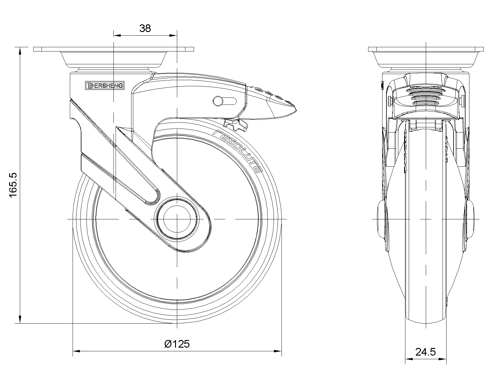 | Cổ điển PPR Bánh xe (đen đen - ống trung bình rộng 37) Đường kính bánh xe × chiều rộng bánh xe 125 x |