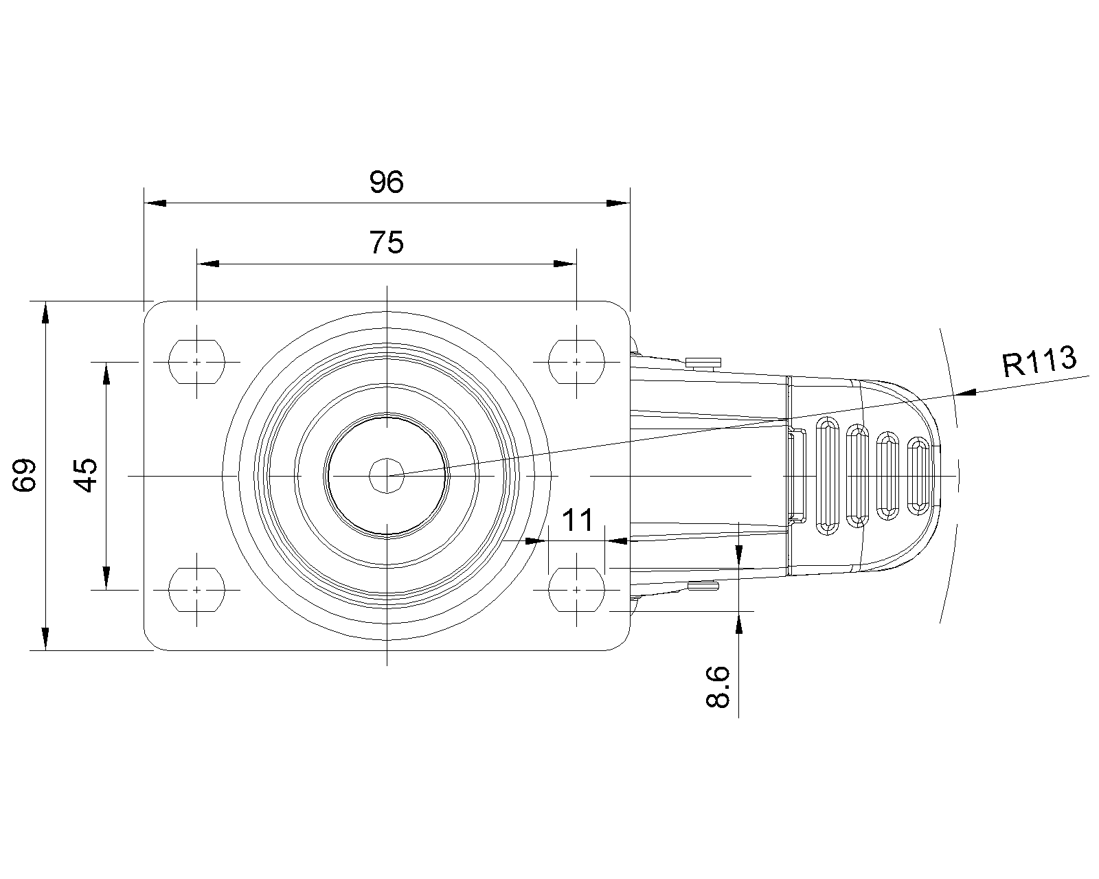 Bánh xe có hệ thống khóa phanh kép, đế lỗ góc 75x45 Chân màu đen làm bằng vật liệu gia cố polyamide, lắp đế Chống gỉ, chống ăn mòn, thẩm mỹ, tiết kiệm và xoay linh hoạt Lõi bánh xe bằng polypropylene chống va đập, bề mặt bánh xe bằng nhựa nhiệt dẻo đàn hồi (TPR) Bánh xe màu đen, loại ống tâm |