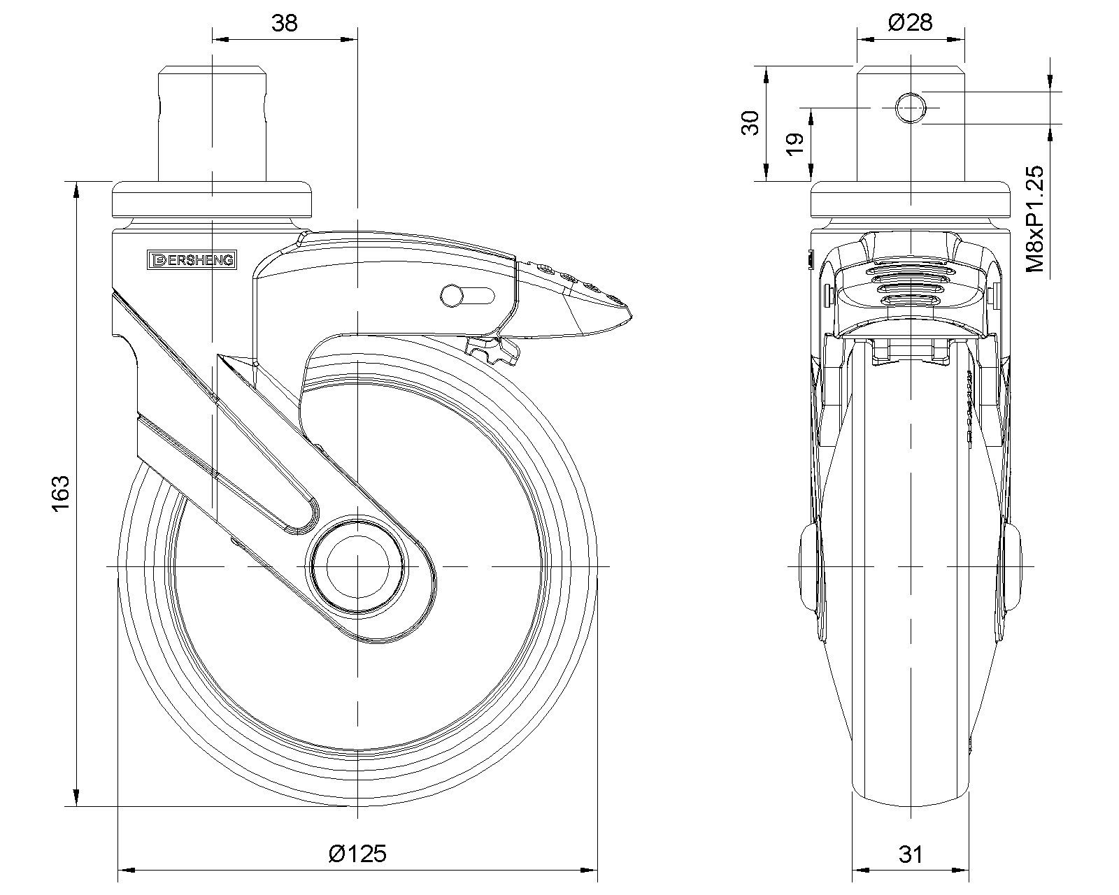 | Cổ điển PPR Bánh xe (đen) Đường kính bánh xe × Chiều rộng bánh xe 125 x 31mm |
