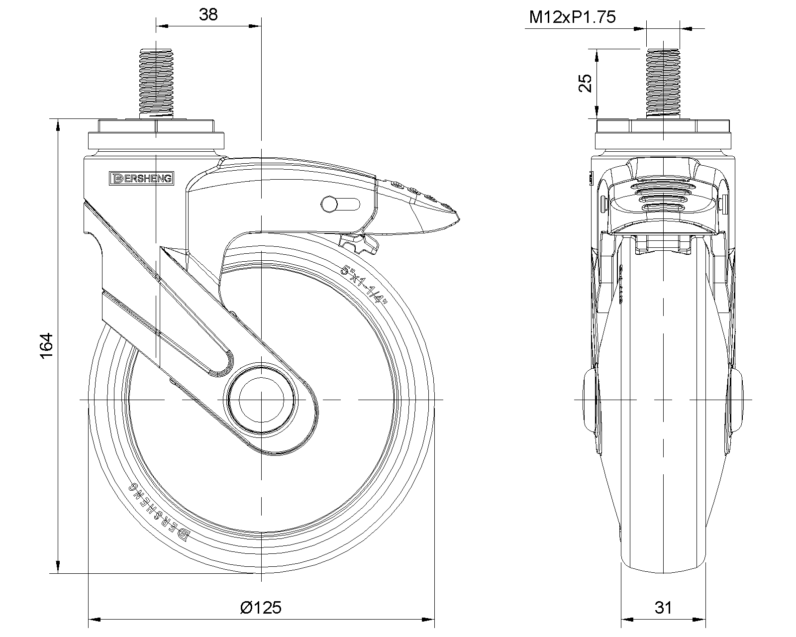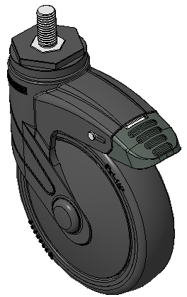 Bánh xe hệ thống khóa phanh kép, ren M12x25 Chân màu đen gia cố bằng polyamide, lắp ren Chống gỉ, chống ăn mòn, thẩm mỹ, tiết kiệm và cho phép xoay trơn tru Lõi bánh xe bằng polypropylene chống va đập, bề mặt bánh xe bằng nhựa nhiệt dẻo đàn hồi (TPR) Bánh xe màu đen, loại ống tâm |