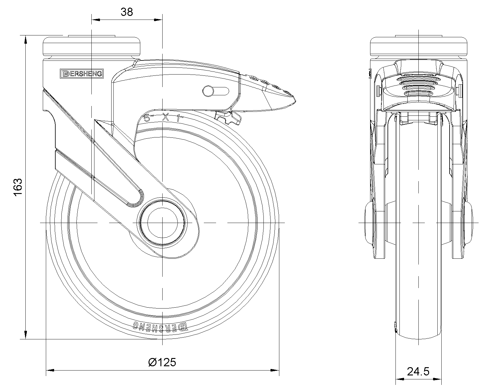| Cổ điển PPR Bánh xe (đen đen - ống trung bình rộng 37) Đường kính bánh xe × chiều rộng bánh xe 125 x |