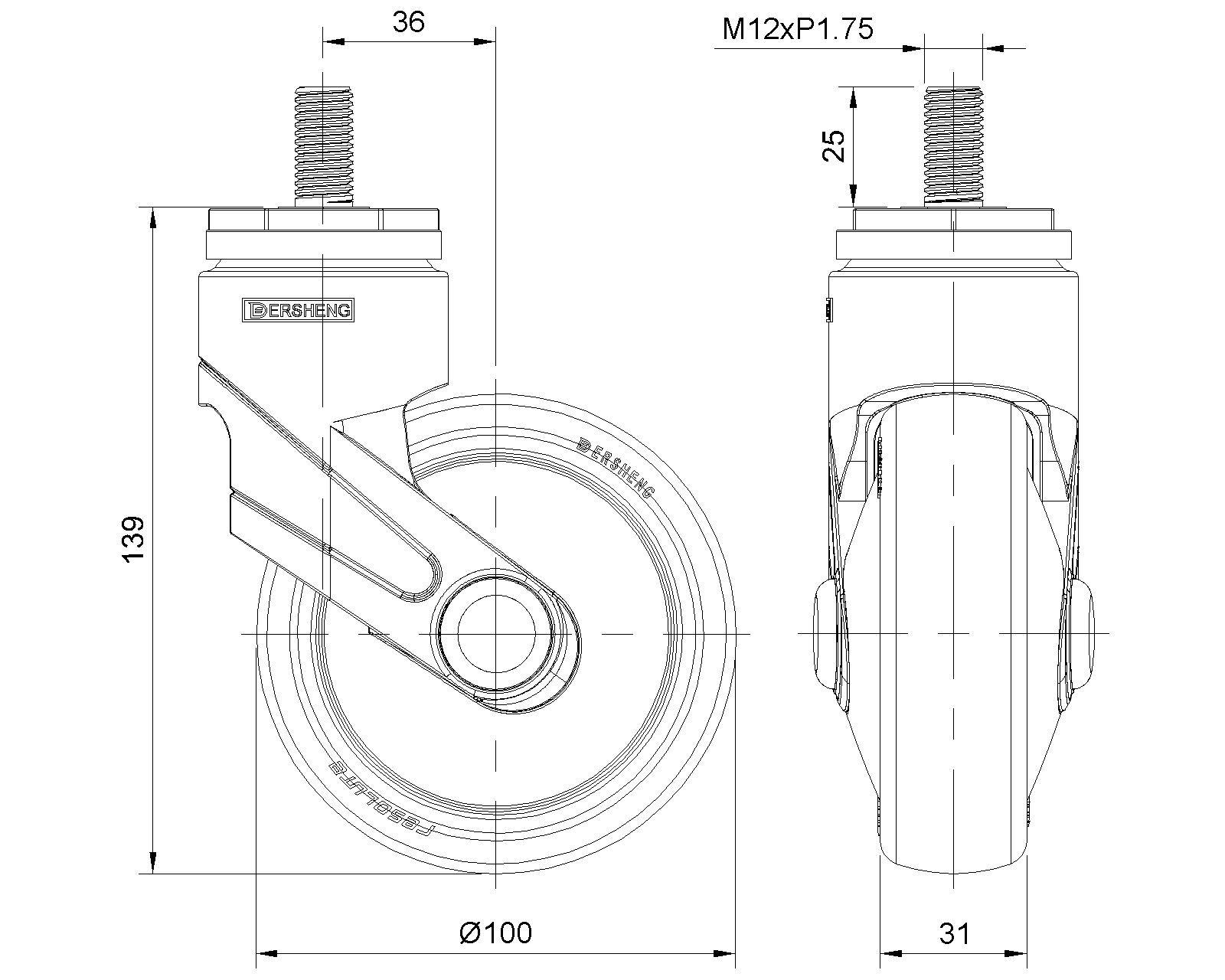 Bánh xe thật, ren M12x25 Bánh xe màu đen với lớp gia cố polyamide, lắp ren Chống gỉ, chống ăn mòn, thẩm mỹ, tiết kiệm và cho phép quay trơn tru Lõi bánh xe bằng polypropylene chống va đập, bề mặt bánh xe bằng nhựa nhiệt dẻo đàn hồi (TPR) Vòng bi bánh xe màu đen—vòng bi chính xác |