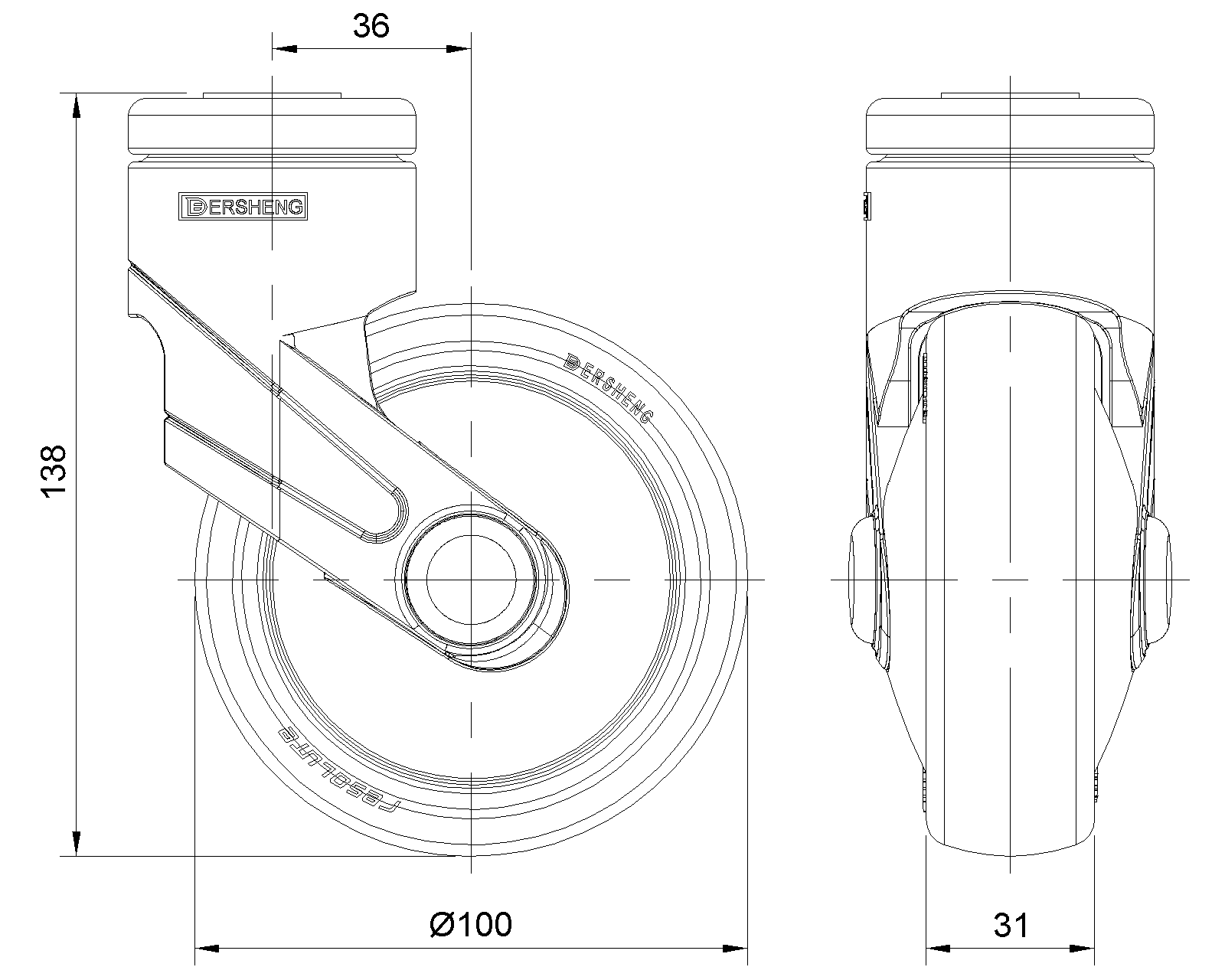 | Cổ điển PPR Bánh xe (đen) Đường kính bánh xe × Chiều rộng bánh xe 100 x 31mm |