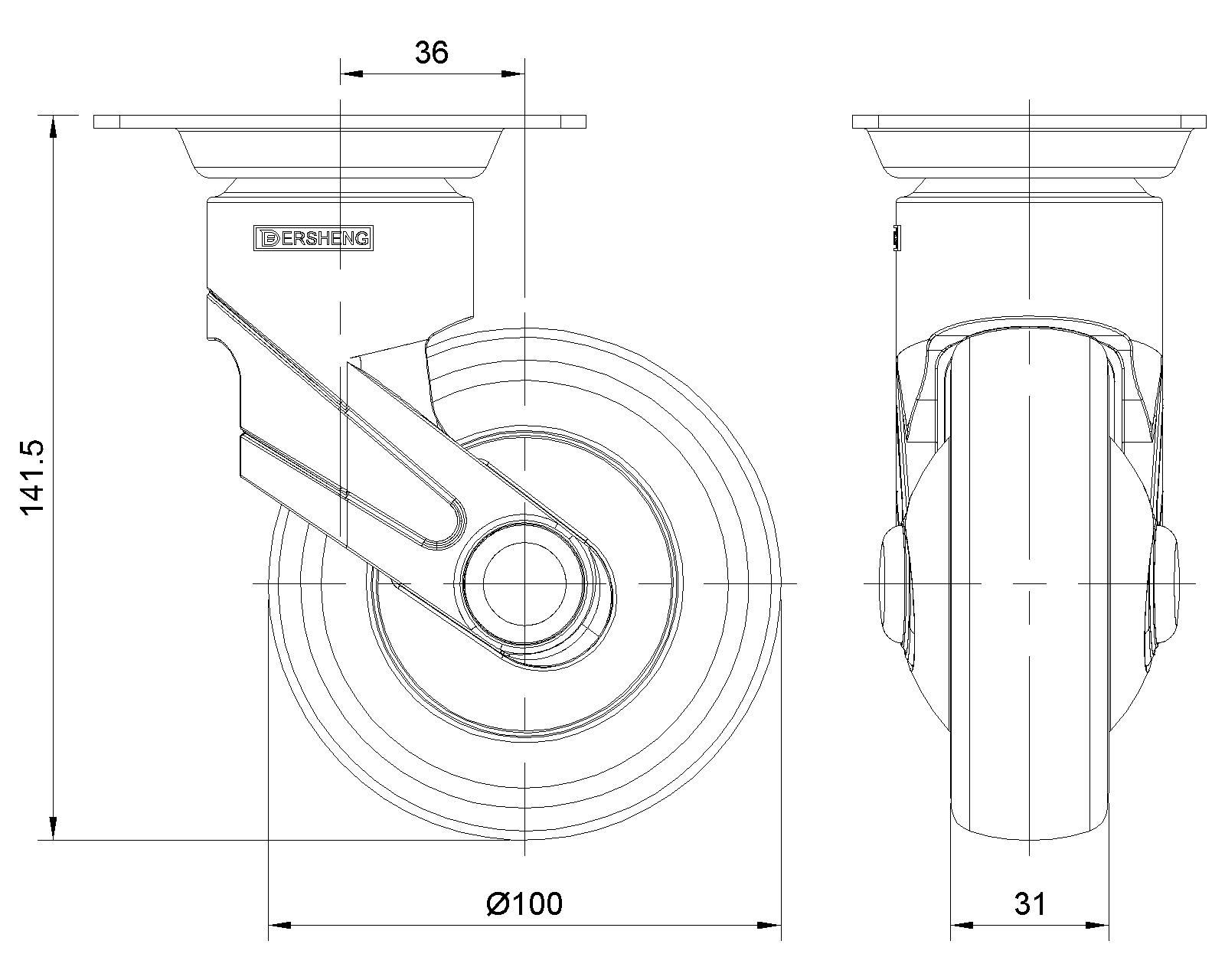 Bánh xe thật, đế cao cấp—đế góc đục lỗ 75x45 Chân đen gia cố bằng polyamide, lắp đế Chống gỉ, chống ăn mòn, thẩm mỹ, tiết kiệm và cho phép xoay trơn tru Lõi bánh xe bằng polypropylene chống va đập, bề mặt bánh xe bằng nhựa nhiệt dẻo đàn hồi (TPR) Bánh xe màu đen—loại ống giữa |
