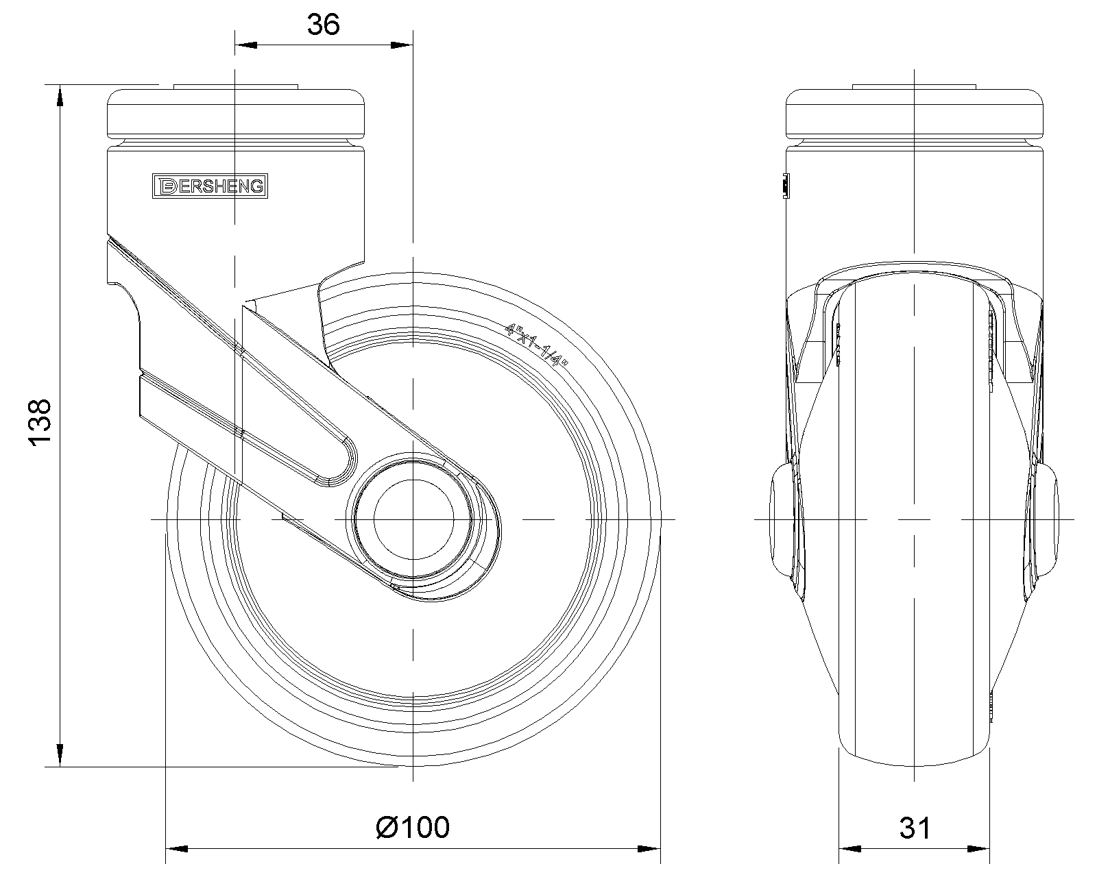 | Cổ điển PPR Bánh xe (đen đen - ống trung bình rộng 37) Đường kính bánh xe × bánh xe rộng 100 x 31mm |