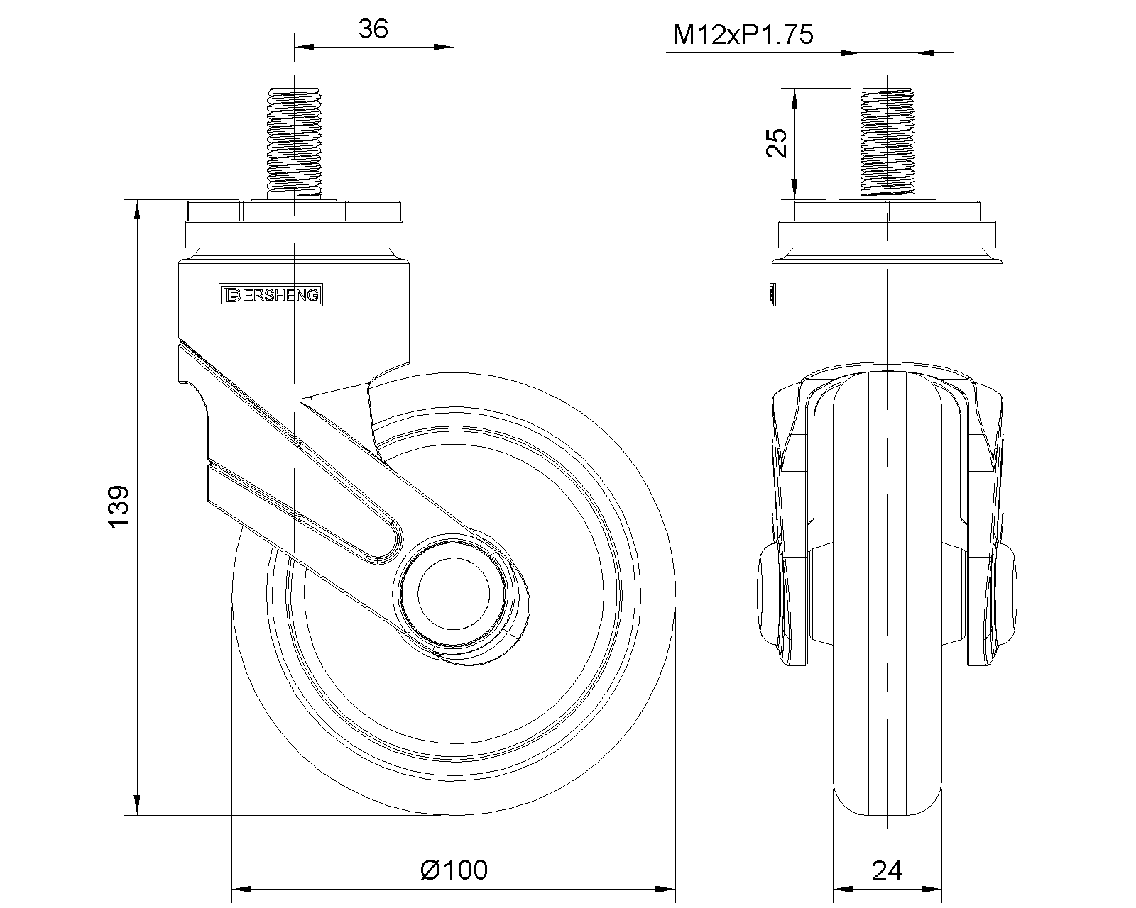 | Cổ điển PPR Bánh xe (đen đen - ống trung bình rộng 37) Đường kính bánh xe × bánh xe rộng 100 x 24mm |