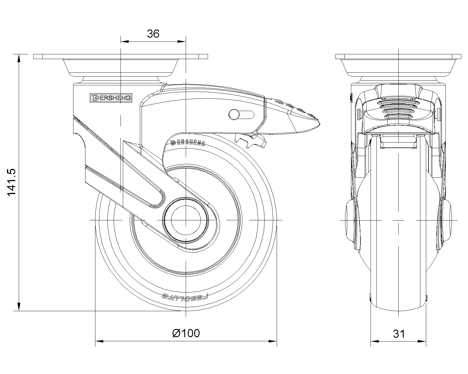 | PPR Bánh xe (đen) Đường kính bánh xe × Chiều rộng bánh xe 100 x 31mm |