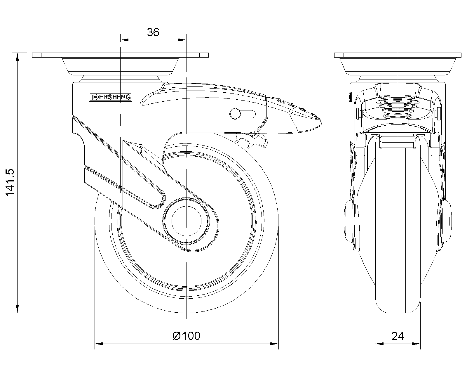 | Cổ điển PPR Bánh xe (đen) Đường kính bánh xe × Chiều rộng bánh xe 100 x 24mm |