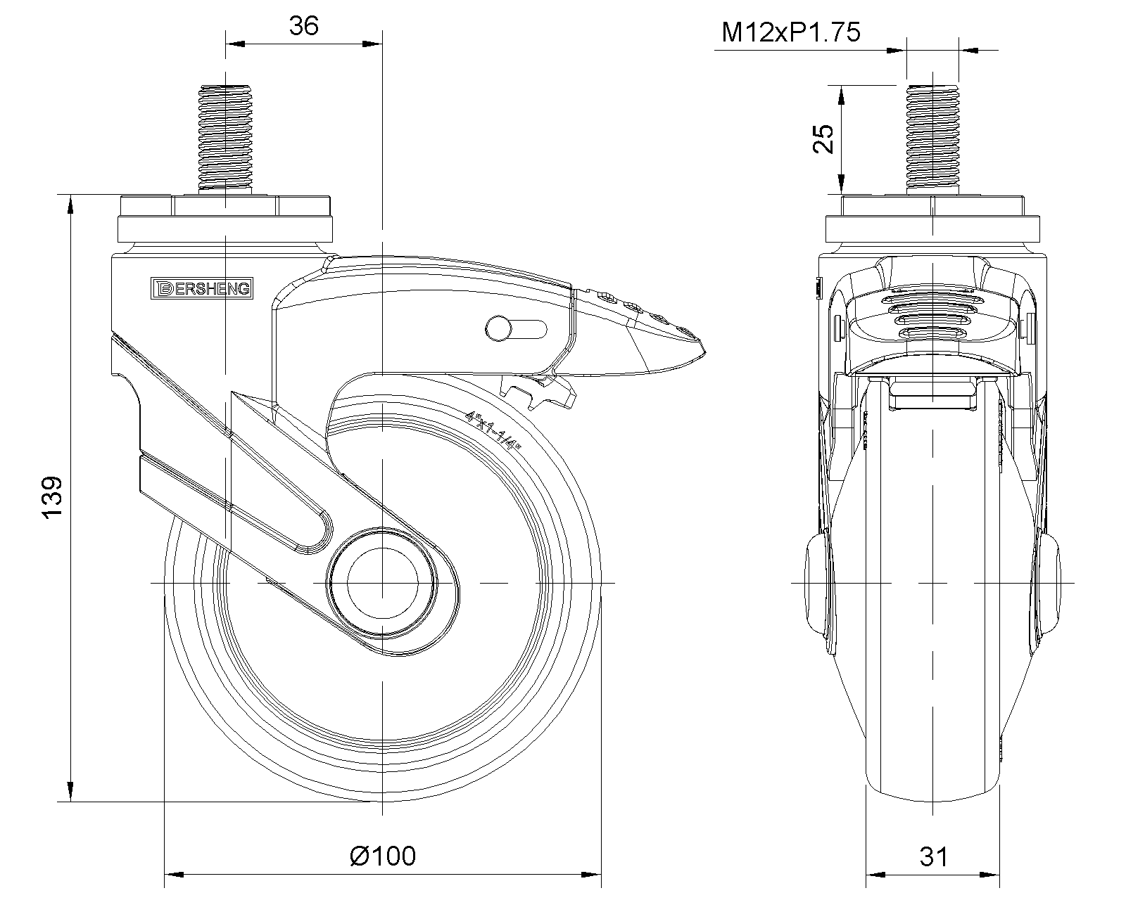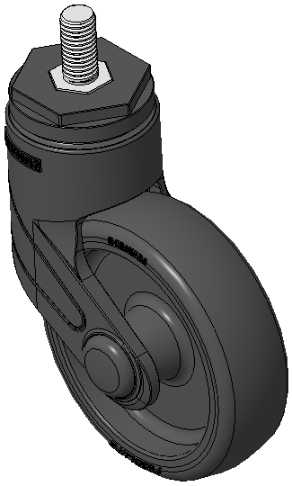 Hệ thống bánh xe khóa kép, ren M12x25 Chân màu đen gia cố bằng polyamide, lắp ren Chống gỉ, chống ăn mòn, thẩm mỹ, tiết kiệm và cho phép quay trơn tru Lõi bánh xe bằng polypropylene chống va đập, bề mặt bánh xe bằng nhựa nhiệt dẻo đàn hồi (TPR) Bánh xe màu đen, loại ống tâm |