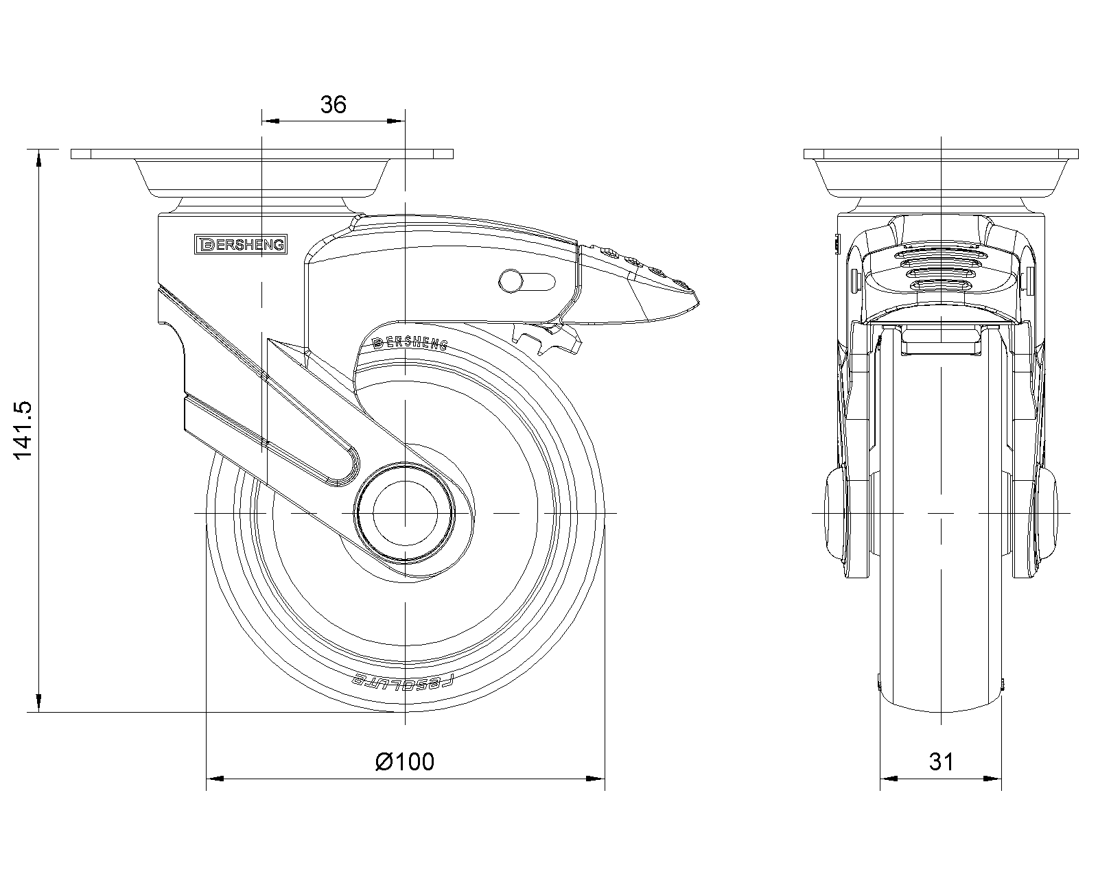 | Cổ điển PPR Bánh xe (đen đen - ống trung bình rộng 37) Đường kính bánh xe × bánh xe rộng 100 x 31mm |
