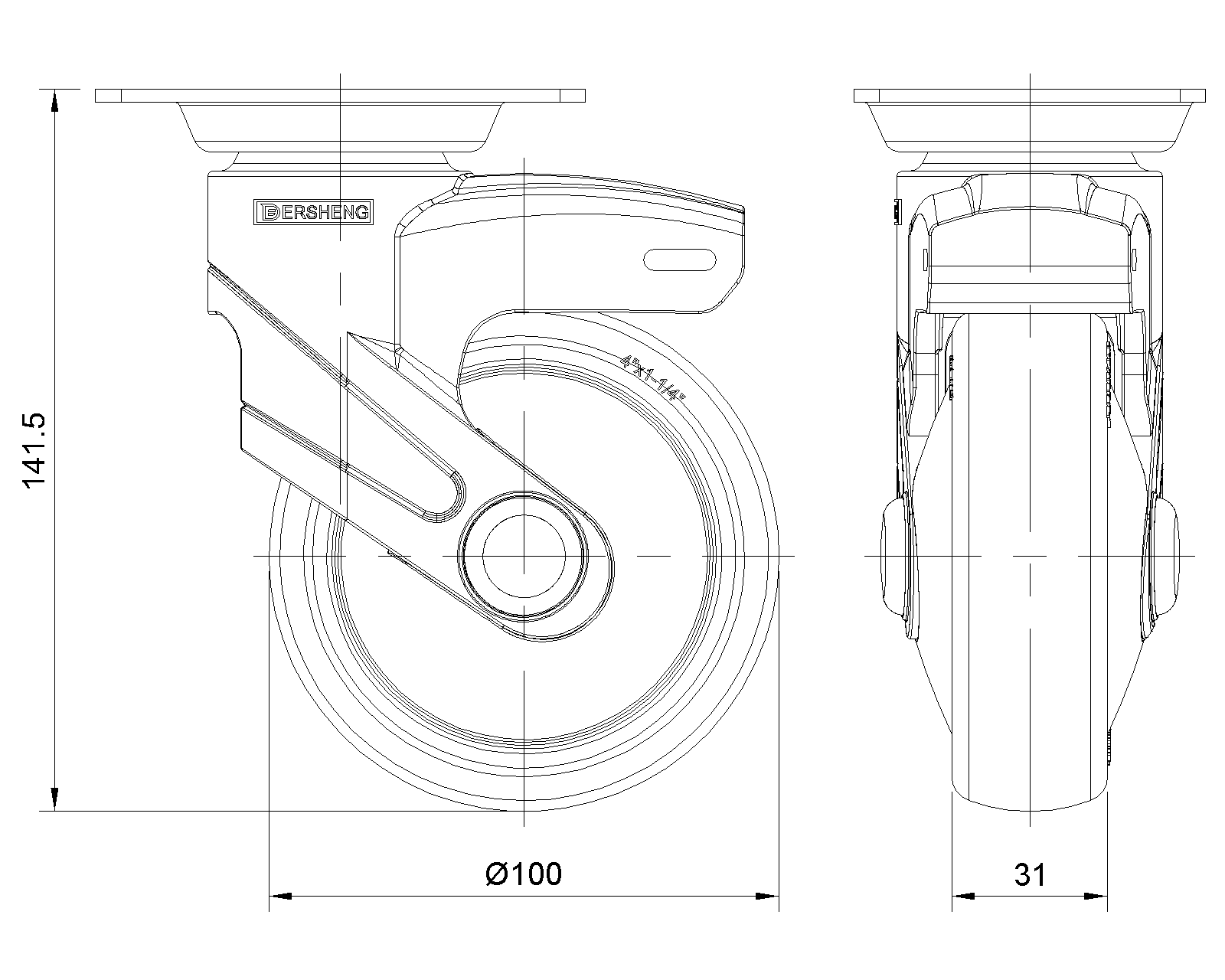 | Cổ điển PPR Bánh xe (đen) Đường kính bánh xe × Chiều rộng bánh xe 100 x 31mm |