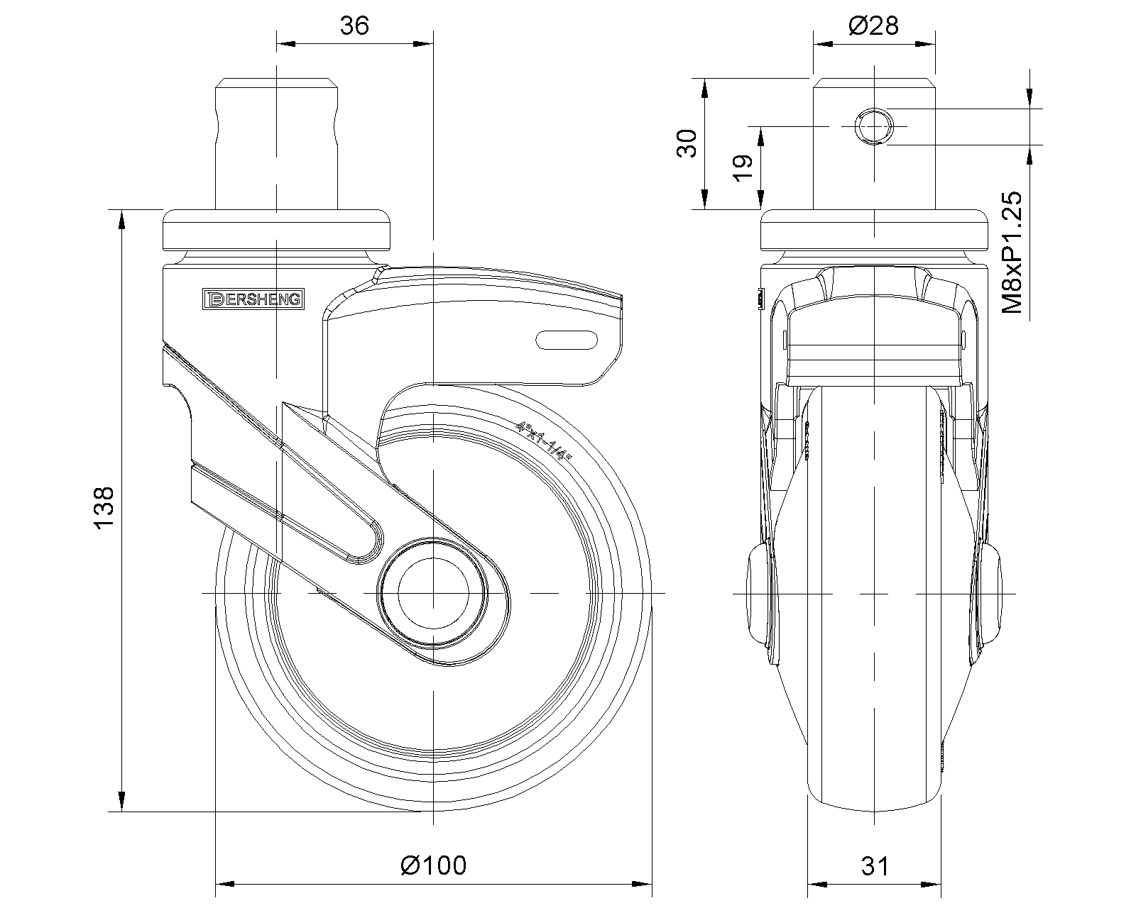 | Cổ điển PPR Bánh xe (đen) Đường kính bánh xe × Chiều rộng bánh xe 100 x 31mm |