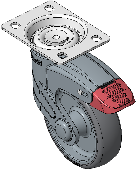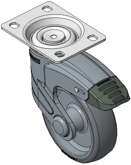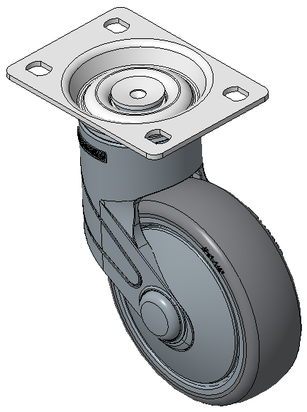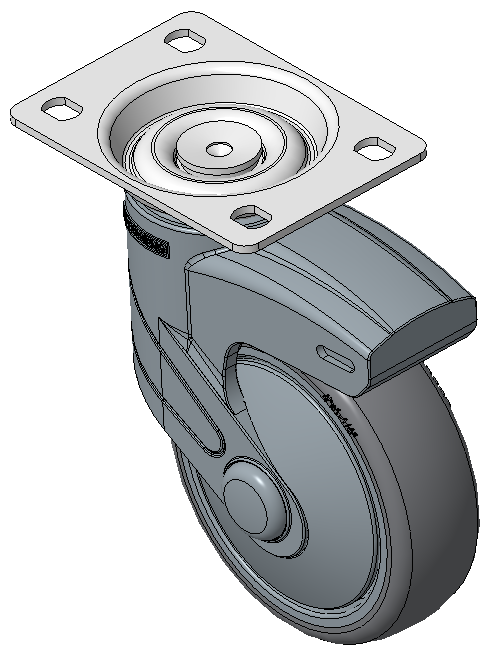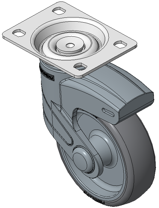 Bánh xe thật, đế cao cấp—đế lỗ góc 75x45 Chân màu xanh xám làm bằng polyamide gia cố, lắp đế Chống gỉ, chống ăn mòn, thẩm mỹ, tiết kiệm và xoay linh hoạt Lõi bánh xe bằng polypropylene chống va đập, bề mặt bánh xe bằng nhựa nhiệt dẻo đàn hồi (TPR) Bánh xe màu xám đậm—loại ống giữa |
