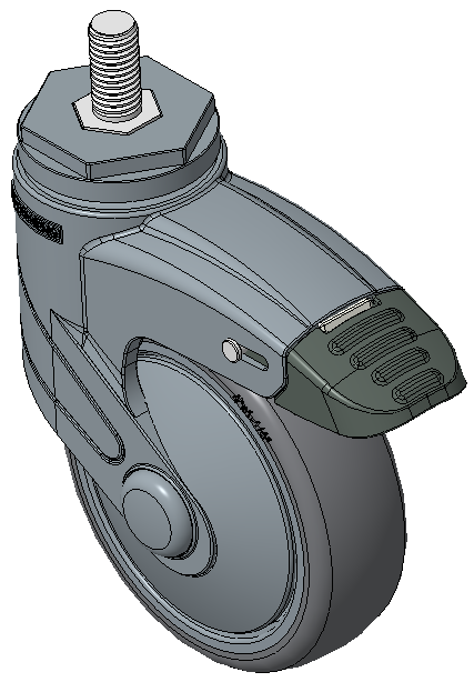 Hệ thống bánh xe khóa kép, ren M12x25 Chân màu xanh xám làm bằng vật liệu polyamide gia cố, lắp ren Chống gỉ, chống ăn mòn, thẩm mỹ, tiết kiệm và cho phép quay trơn tru Lõi bánh xe bằng polypropylene chống va đập, bề mặt bánh xe bằng nhựa nhiệt dẻo đàn hồi (TPR) Vòng bi bánh xe màu xám đậm—vòng bi chính xác |