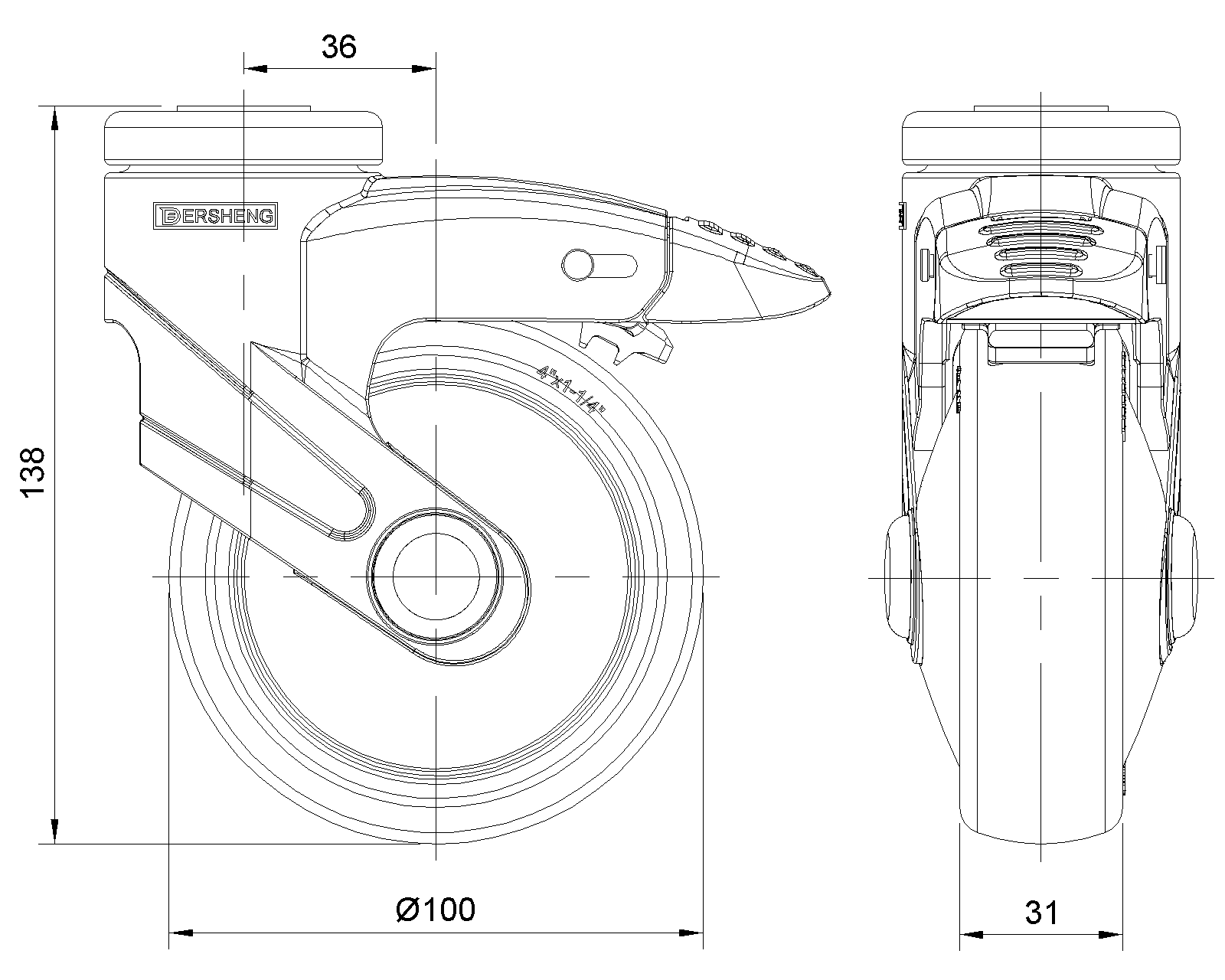 Bánh xe có hệ thống khóa phanh kép, đinh tán rỗng—lỗ Ø12,2 Chân màu xanh xám làm bằng vật liệu polyamide gia cố, lắp đặt khóa Chống gỉ, chống ăn mòn, thẩm mỹ, tiết kiệm và xoay linh hoạt Lõi bánh xe bằng polypropylene chống va đập, bề mặt bánh xe bằng nhựa nhiệt dẻo đàn hồi (TPR) Vòng bi bánh xe màu xám đậm—vòng bi chính xác |
