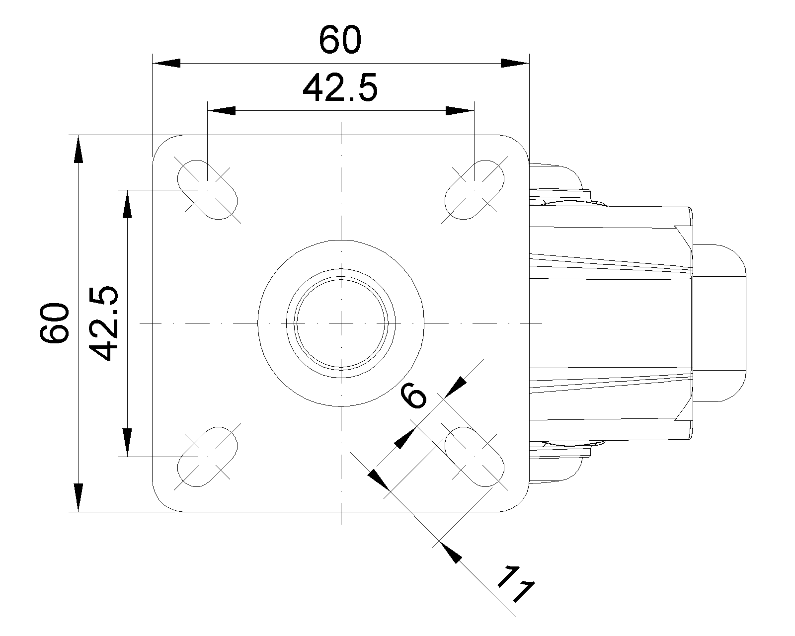 | Bánh xe cố định, đế cao cấp—đế lỗ góc 42,5x42,5 Chân màu đen gia cố bằng polyamide, lắp đế Chống gỉ, chống ăn mòn, thẩm mỹ, tiết kiệm và cho phép xoay linh hoạt Lõi bánh xe bằng polypropylen chống va đập, bề mặt bánh xe bằng nhựa nhiệt dẻo đàn hồi (TPR) Bánh xe màu đen—loại ống trung tâm |