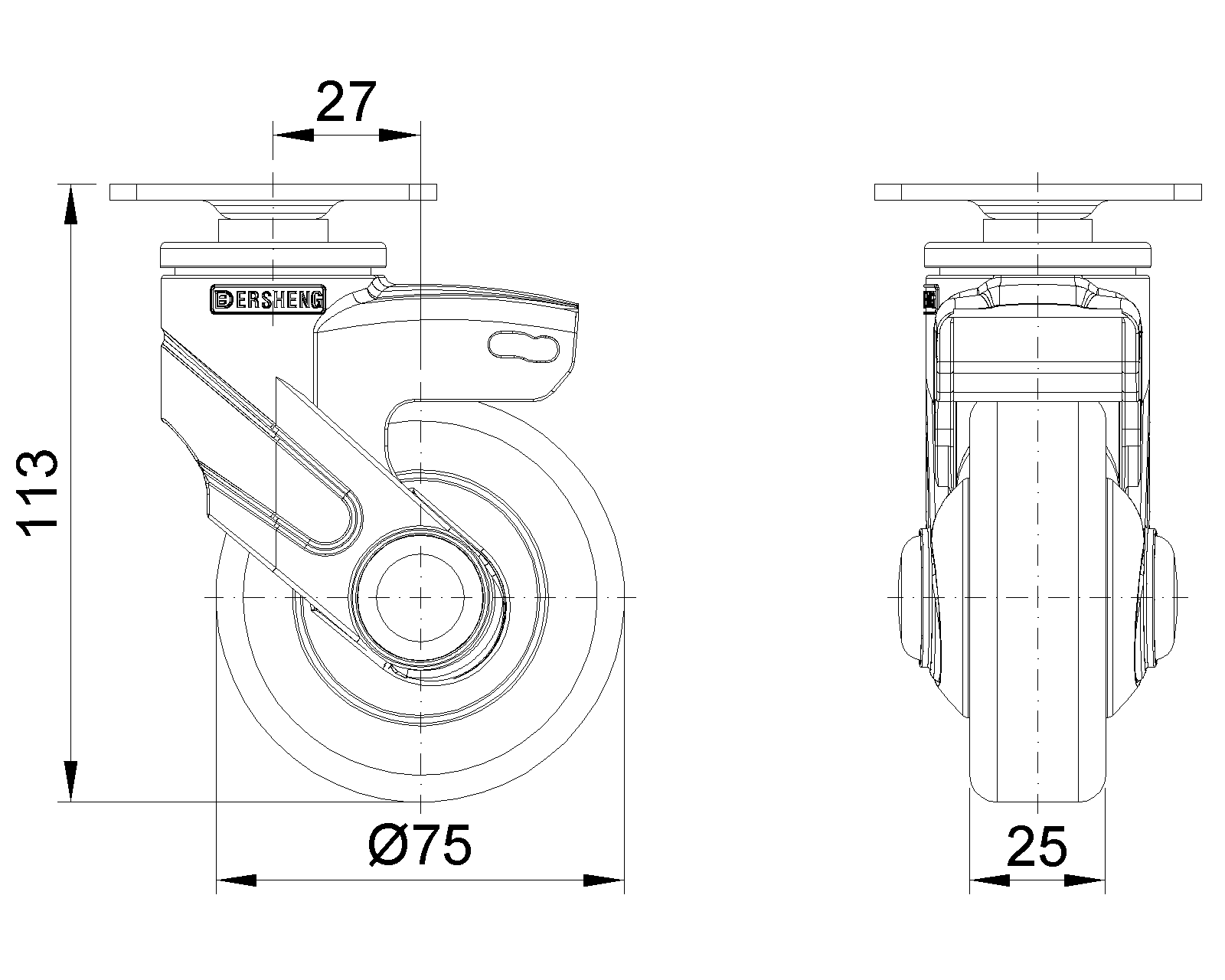 | Bánh xe PPR(Đen) đường kính bánh xe × chiều rộng bánh xe 75 x 25mm |