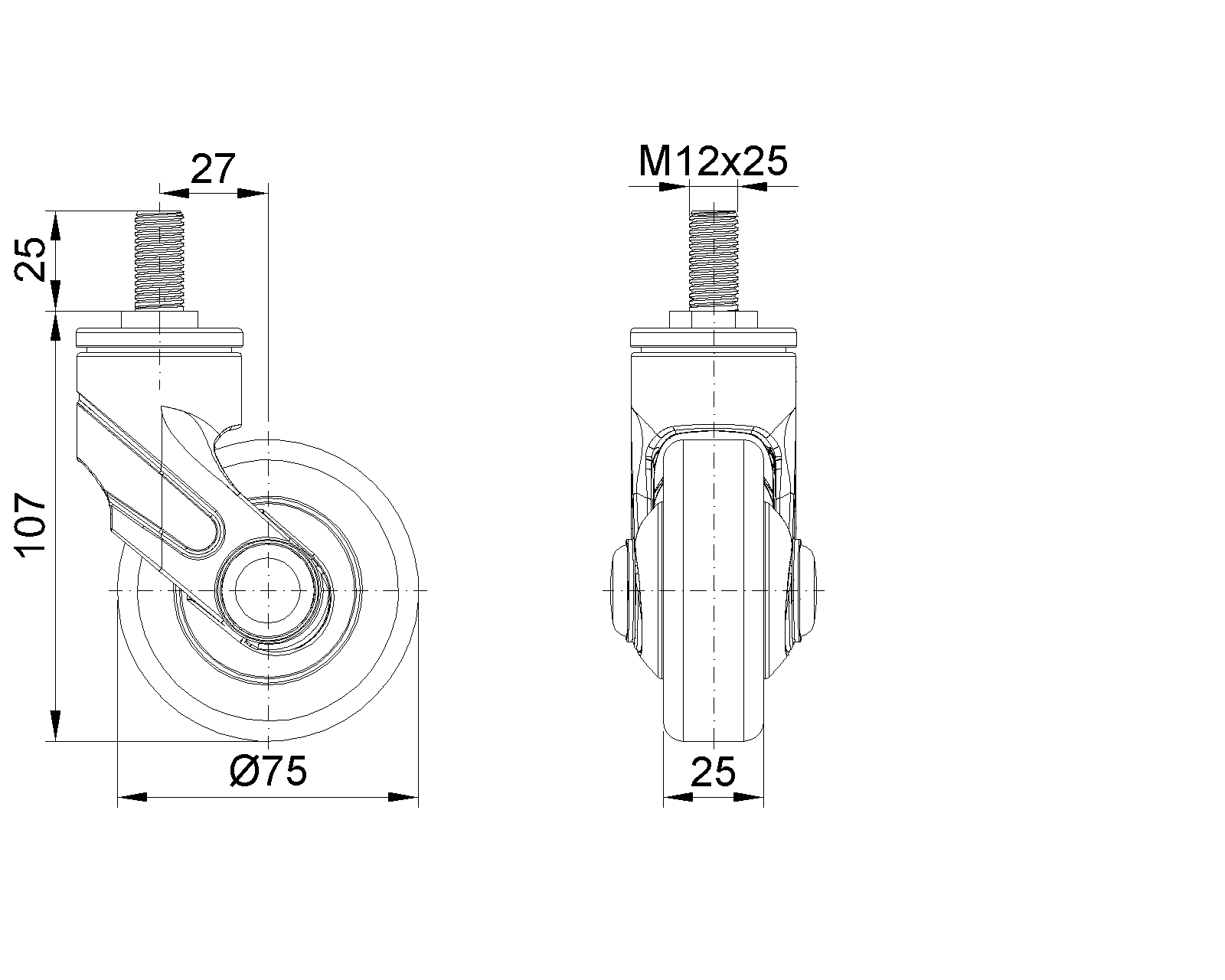 | Bánh xe PPR(Đen) đường kính bánh xe × chiều rộng bánh xe 75 x 25mm |