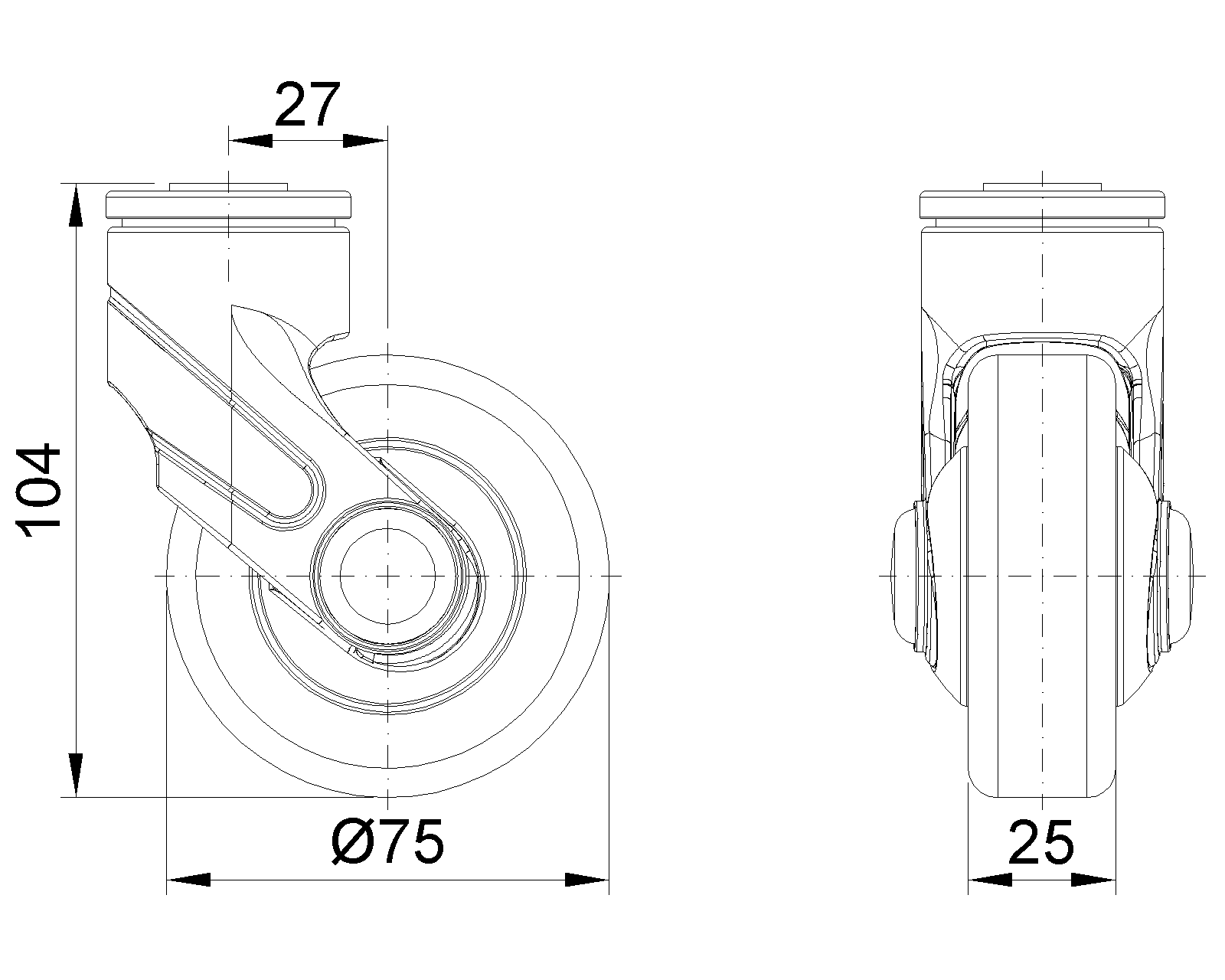 | Bánh xe PPR(Đen) đường kính bánh xe × chiều rộng bánh xe 75 x 25mm |