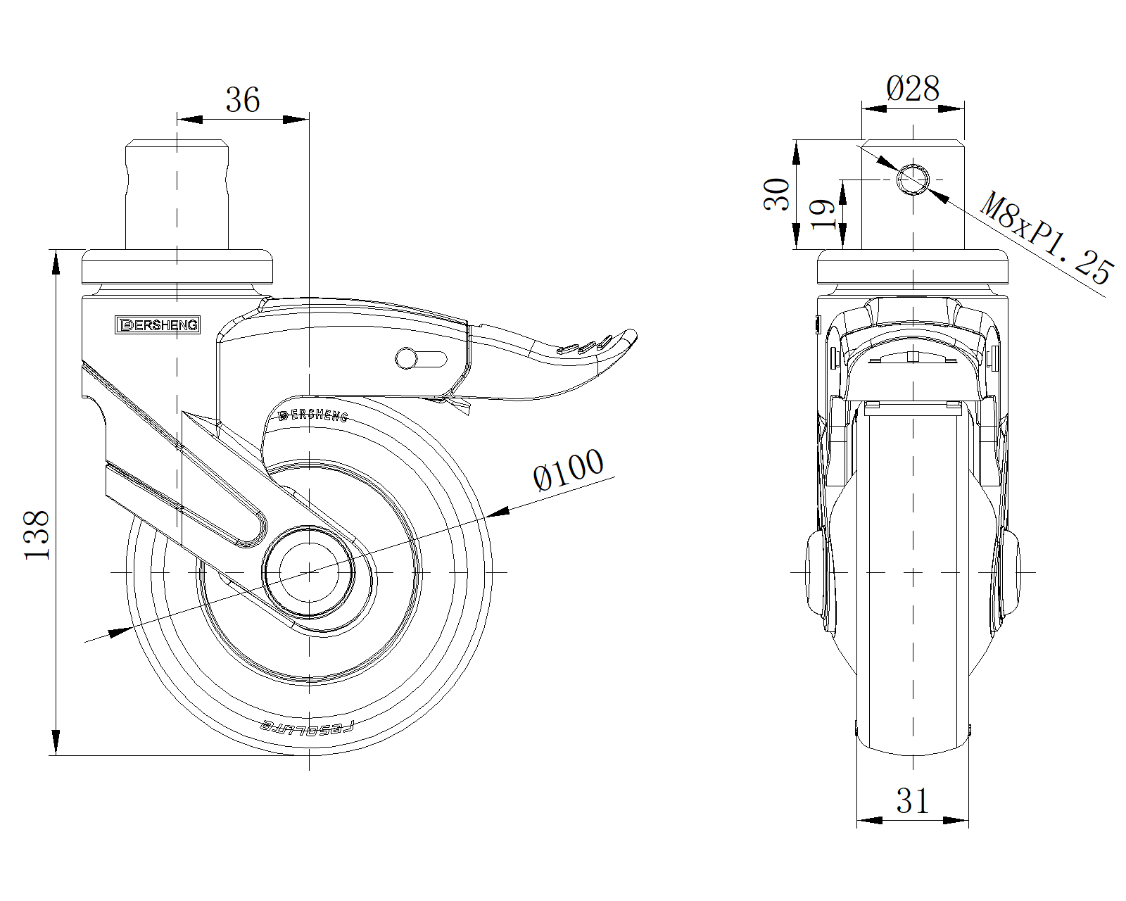 | PPR Bánh xe (đen) Đường kính bánh xe × Chiều rộng bánh xe 100 x 31mm |