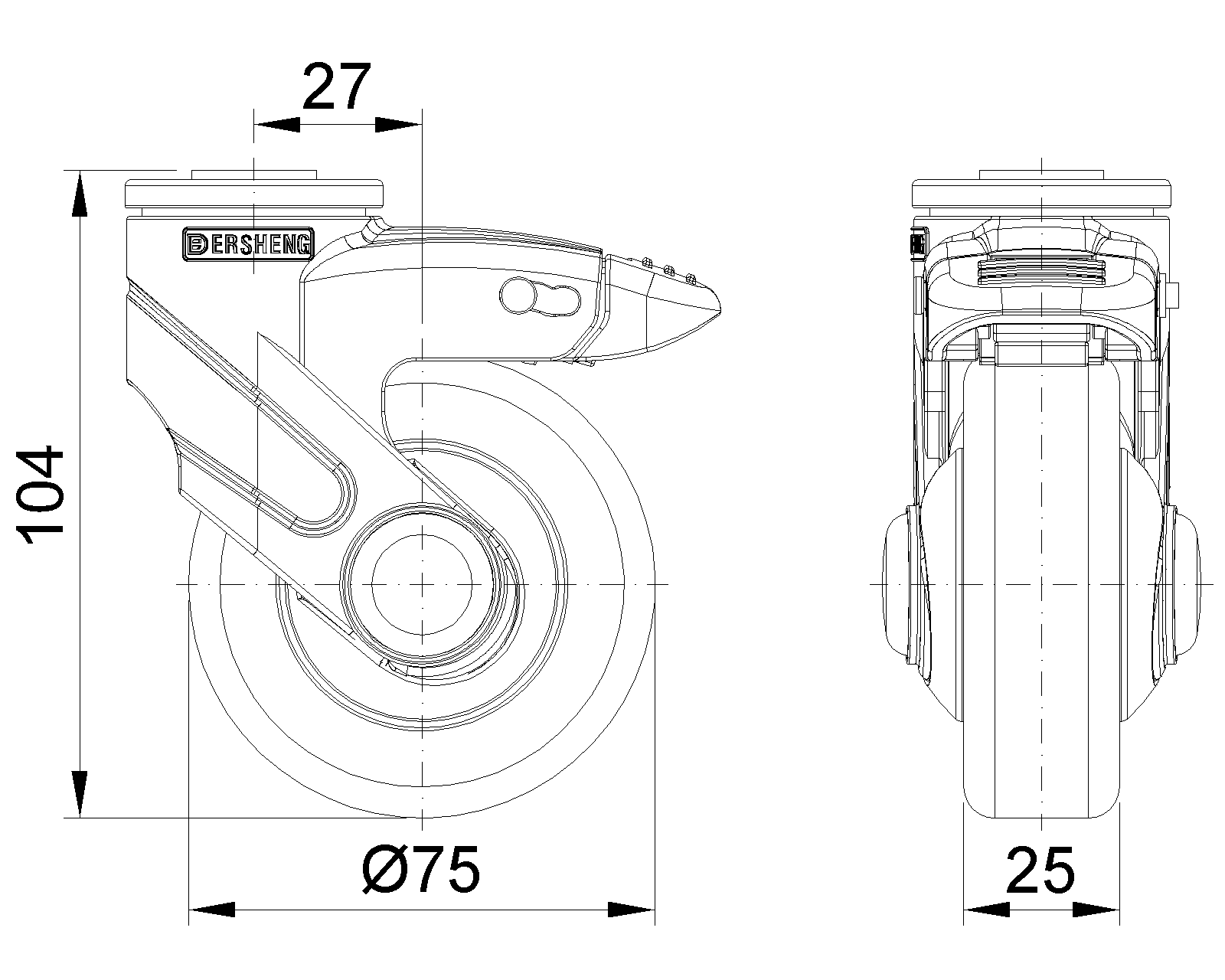 | Bánh xe PPR(Đen) đường kính bánh xe × chiều rộng bánh xe 75 x 25mm |