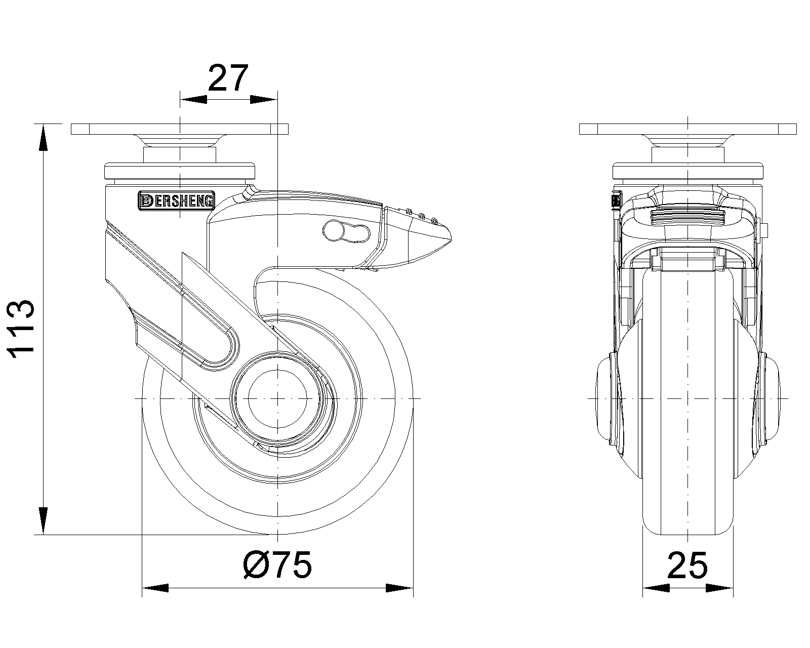 | Bánh xe PPR(Đen) đường kính bánh xe × chiều rộng bánh xe 75 x 25mm |