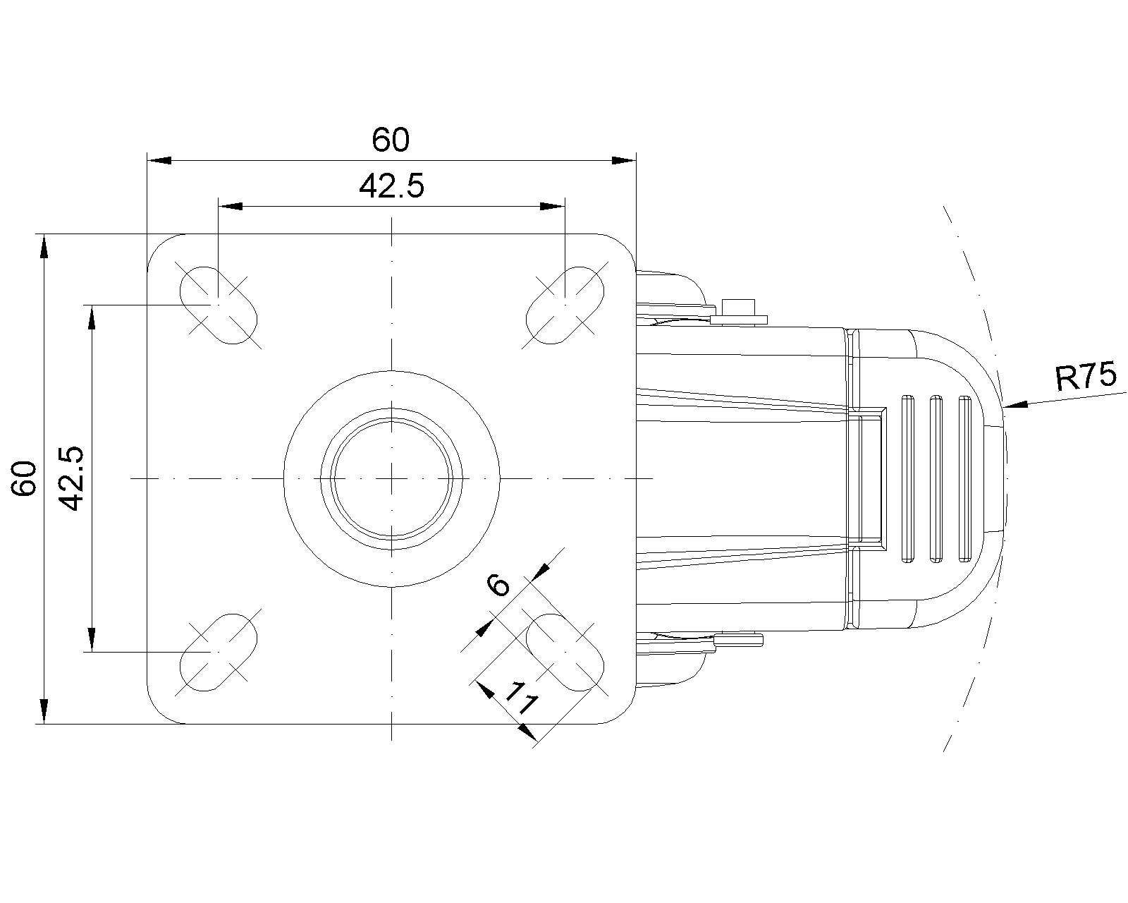 Bánh xe với hệ thống khóa kép dài, đế cao cấp—đế lỗ góc 42,5x42,5 Chân màu đen gia cố bằng polyamide, lắp đế Chống gỉ, chống ăn mòn, thẩm mỹ, tiết kiệm và xoay linh hoạt Lõi bánh xe bằng polypropylene chống va đập, bề mặt bánh xe bằng nhựa nhiệt dẻo đàn hồi (TPR) Bánh xe màu đen—loại ống giữa |