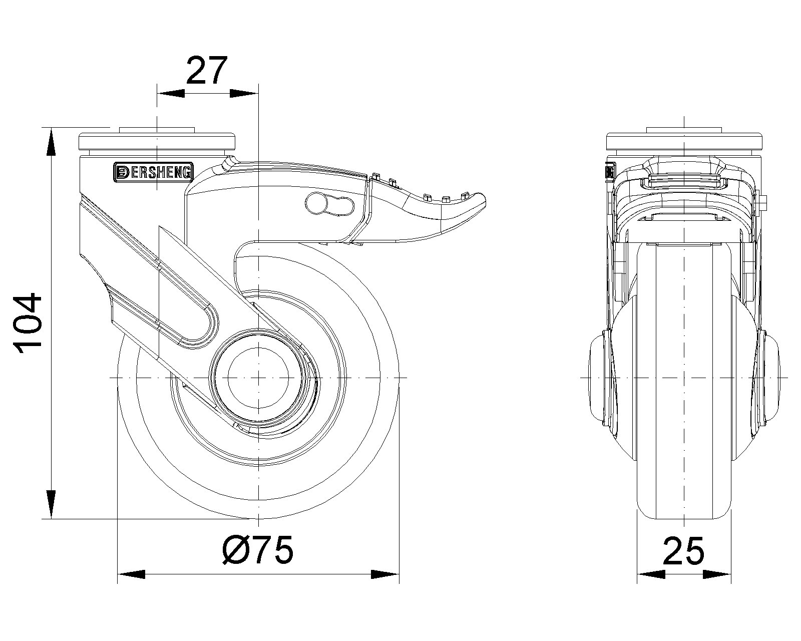 | Bánh xe PPR(Đen) đường kính bánh xe × chiều rộng bánh xe 75 x 25mm |