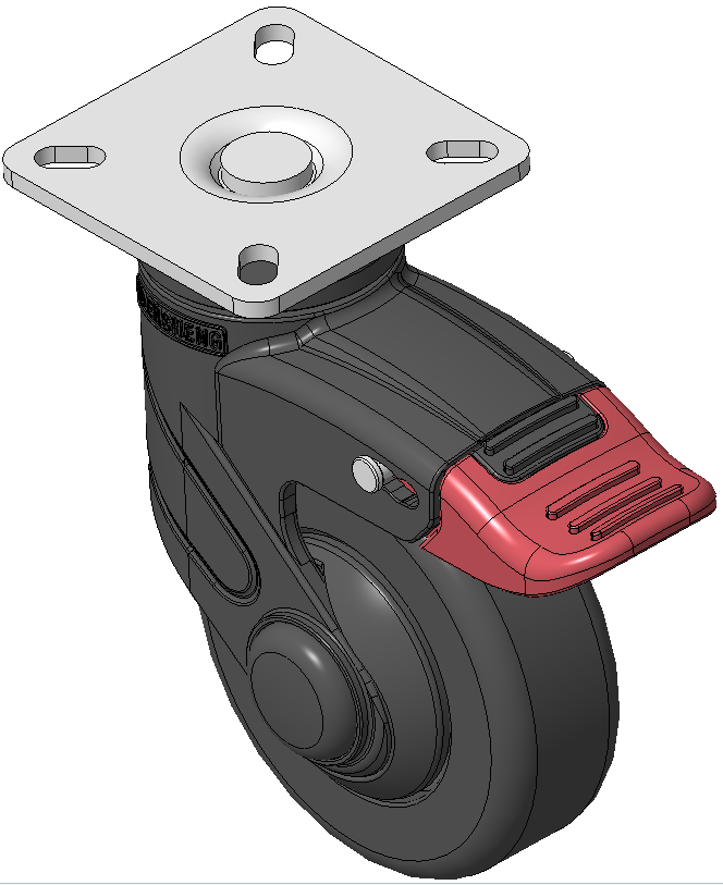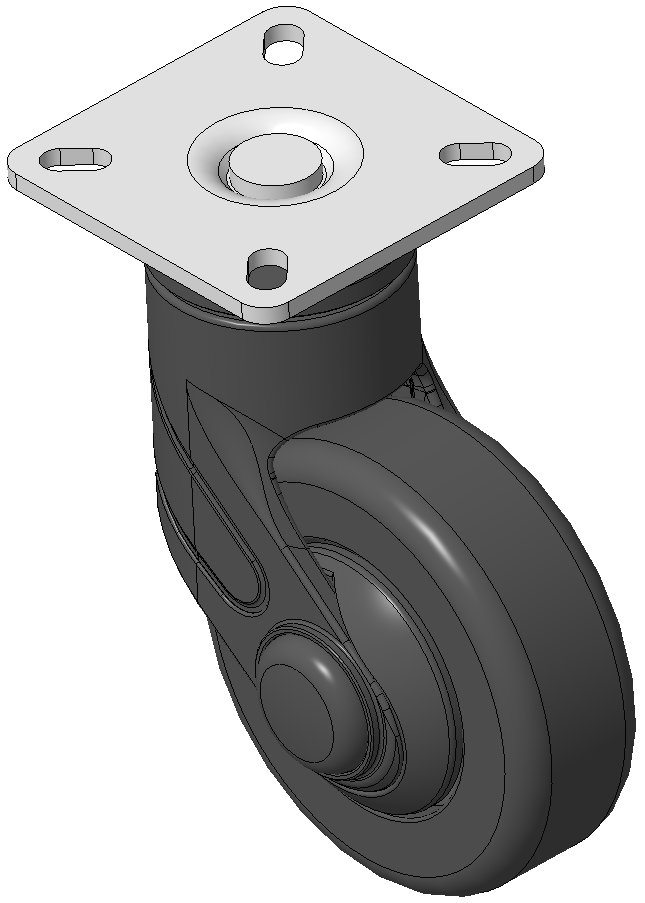 Bánh xe với hệ thống khóa kép dài, đế cao cấp—đế lỗ góc 42,5x42,5 Chân màu đen gia cố bằng polyamide, lắp đế Chống gỉ, chống ăn mòn, thẩm mỹ, tiết kiệm và xoay linh hoạt Lõi bánh xe bằng polypropylene chống va đập, bề mặt bánh xe bằng nhựa nhiệt dẻo đàn hồi (TPR) Bánh xe màu đen—loại ống giữa |
