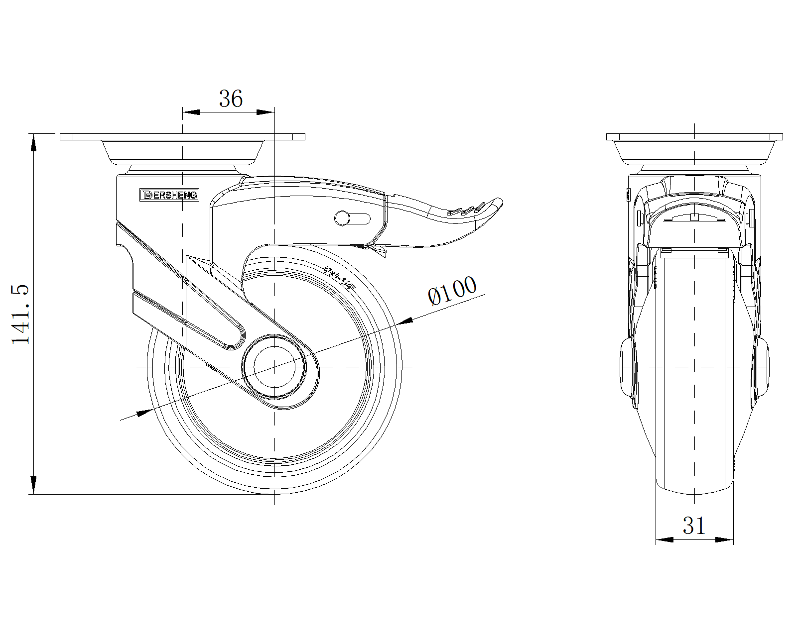 | Cổ điển PPR Bánh xe (đen đen - ống trung bình rộng 37) Đường kính bánh xe × bánh xe rộng 100 x 31mm |