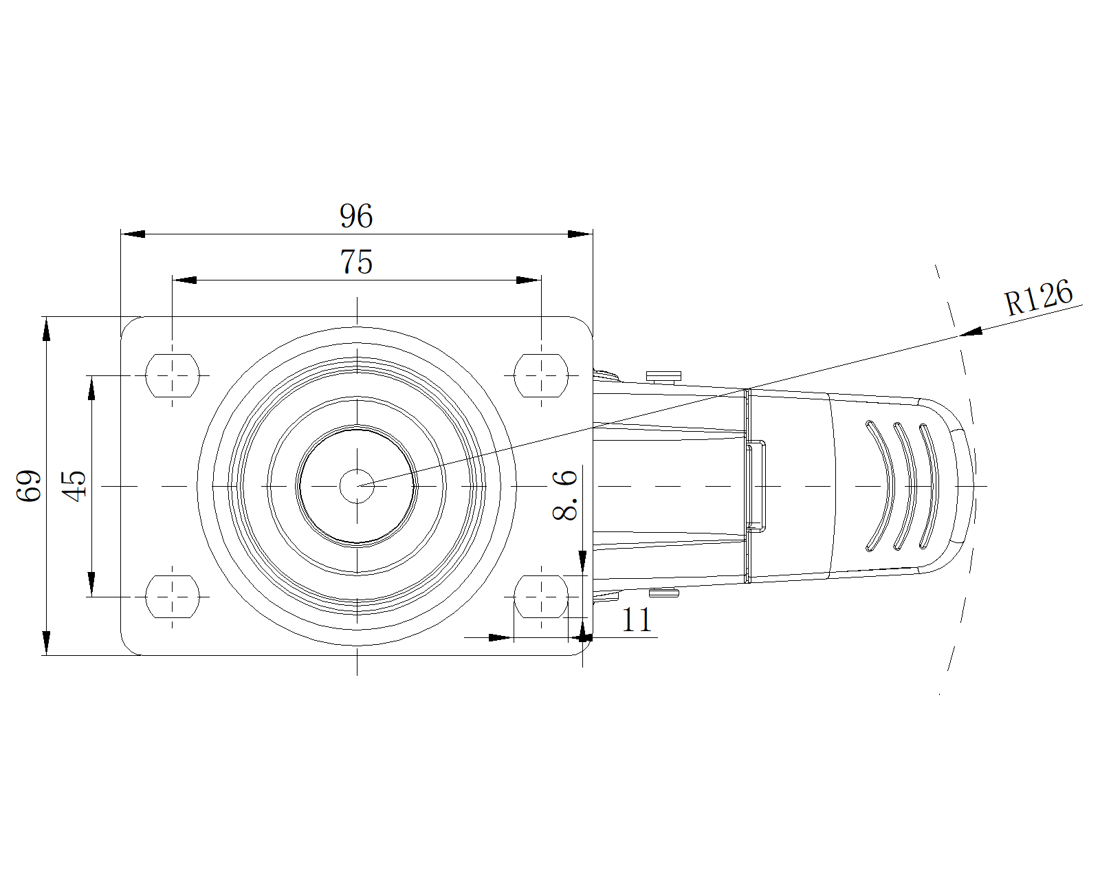 Bánh xe có hệ thống khóa phanh định hướng, đế lỗ góc 75x45 Chân màu đen làm bằng vật liệu gia cố polyamide, lắp đế Chống gỉ, chống ăn mòn, thẩm mỹ, tiết kiệm và xoay linh hoạt Lõi bánh xe bằng polypropylene chống va đập, bề mặt bánh xe bằng nhựa nhiệt dẻo đàn hồi (TPR) Vòng bi bánh xe màu đen—vòng bi chính xác |