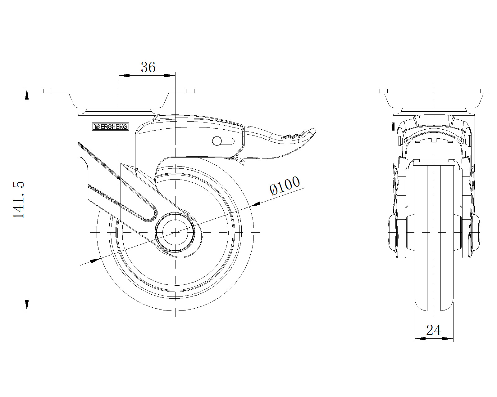 | Cổ điển PPR Bánh xe (đen đen - ống trung bình rộng 37) Đường kính bánh xe × bánh xe rộng 100 x 24mm |