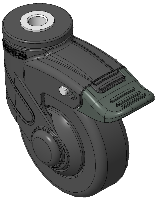 Bánh xe với hệ thống khóa kép dài, lắp đinh tán rỗng—lỗ rỗng Ø10,2 Chân màu đen làm bằng polyamide gia cường, lắp khóa Chống gỉ, chống ăn mòn, thẩm mỹ, tiết kiệm và xoay linh hoạt Lõi bánh xe bằng polypropylene chống va đập, bề mặt bánh xe bằng nhựa nhiệt dẻo đàn hồi (TPR) Bánh xe màu đen—loại ống tâm |