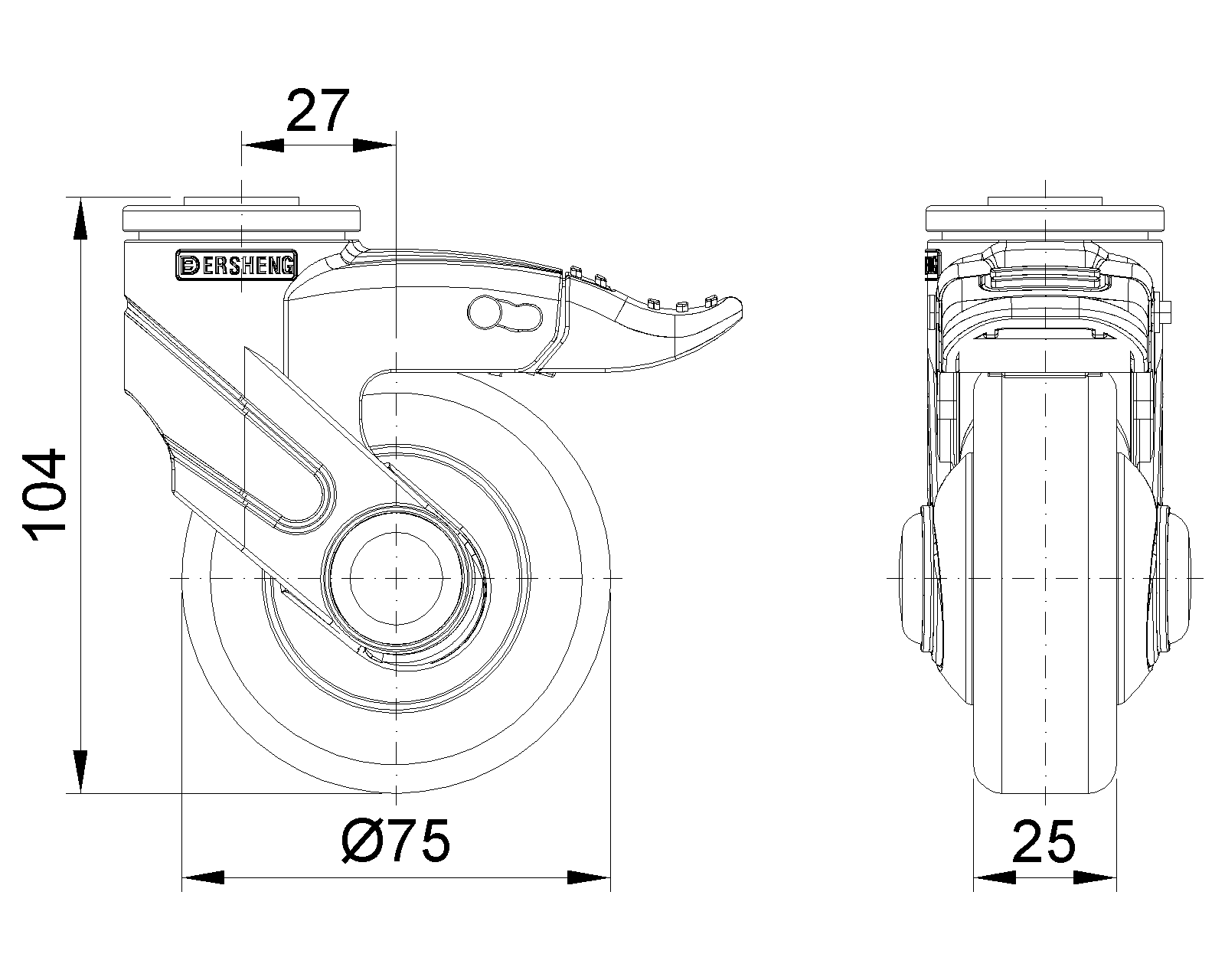 | Bánh xe PPR(Đen) đường kính bánh xe × chiều rộng bánh xe 75 x 25mm |