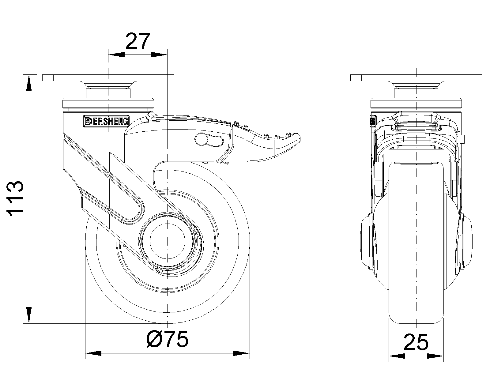 | Bánh xe PPR(Đen) đường kính bánh xe × chiều rộng bánh xe 75 x 25mm |