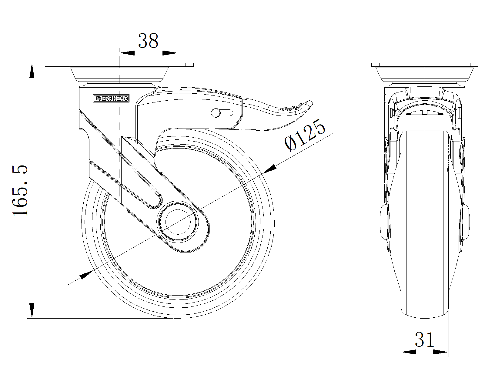 | Cổ điển PPR Bánh xe (đen) Đường kính bánh xe × Chiều rộng bánh xe 125 x 31mm |