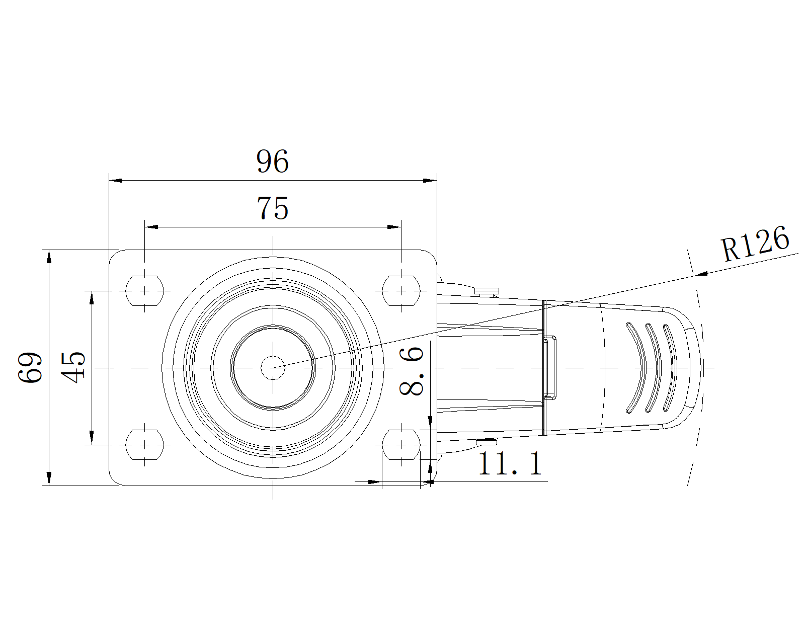Bánh xe có hệ thống khóa phanh định hướng, đế lỗ góc 75x45 Chân màu đen làm bằng vật liệu gia cố polyamide, lắp đế Chống gỉ, chống ăn mòn, thẩm mỹ, tiết kiệm và xoay linh hoạt Lõi bánh xe bằng polypropylene chống va đập, bề mặt bánh xe bằng nhựa nhiệt dẻo đàn hồi (TPR) Vòng bi bánh xe màu đen—vòng bi chính xác |