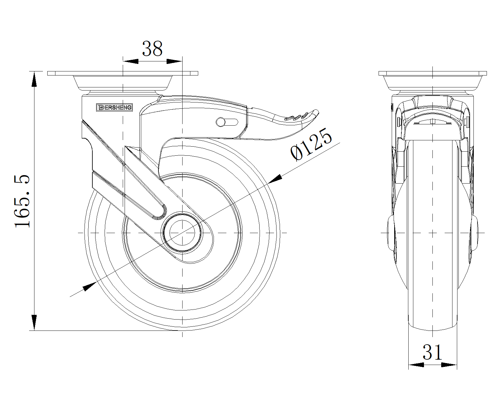 | PPR Bánh xe (loại ống trung bình) (đen đen) Đường kính bánh xe × Chiều rộng bánh xe 125 x 31mm |