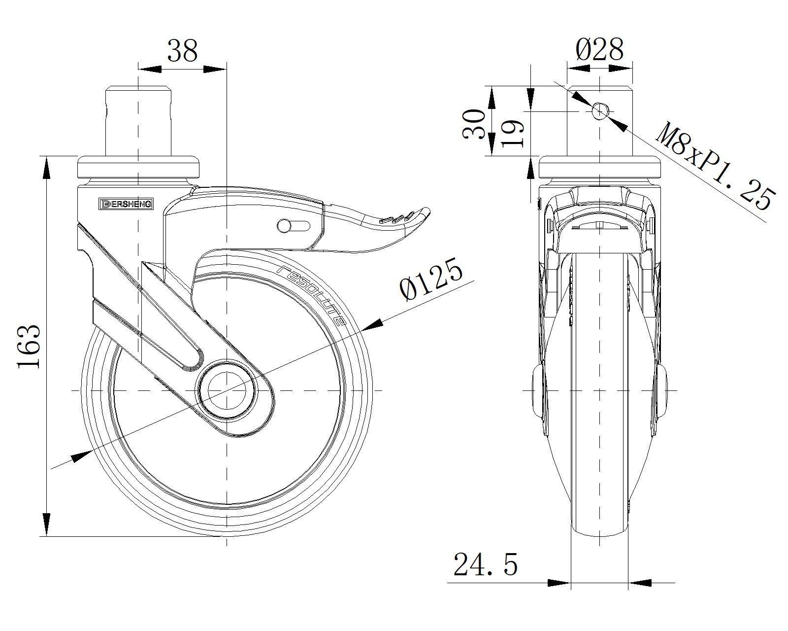 | Cổ điển PPR Bánh xe (đen đen - ống trung bình rộng 37) Đường kính bánh xe × chiều rộng bánh xe 125 x |