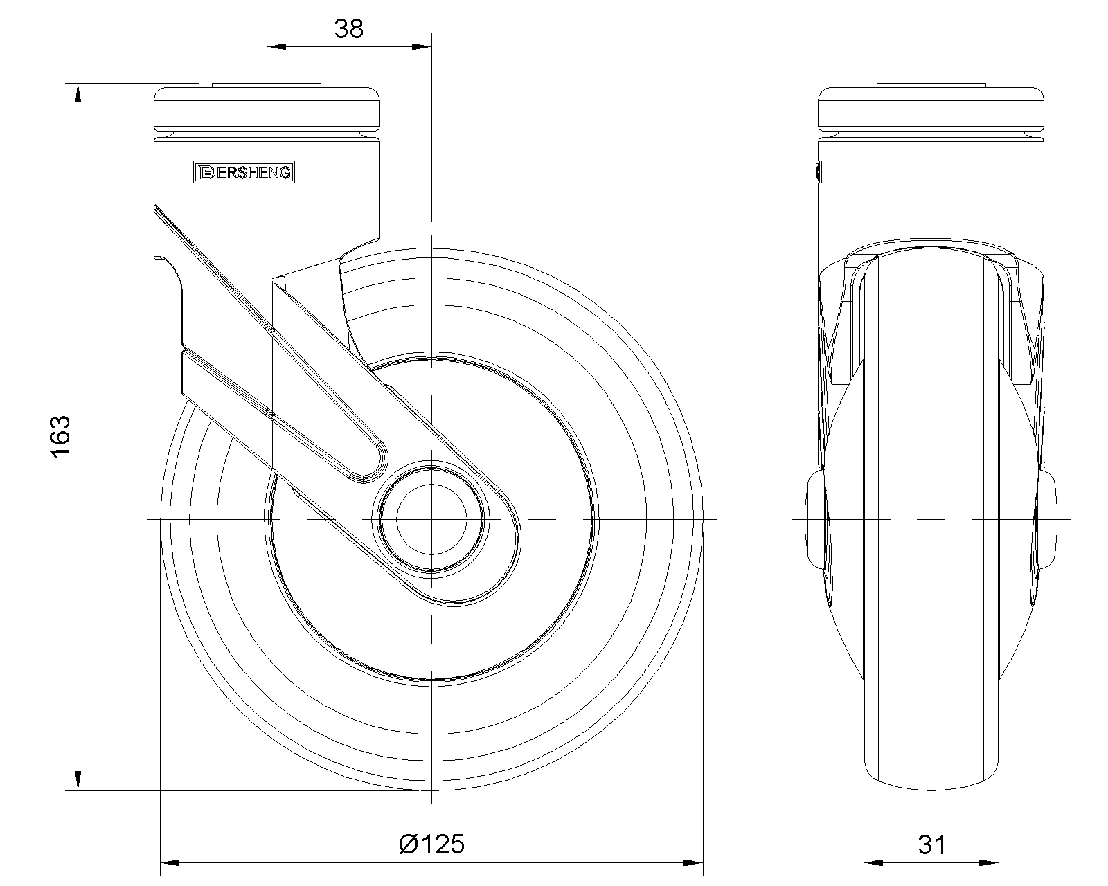 | (màu xanh xám)Đường kính bánh xe đầy đủ × chiều rộng bánh xe 125 x 31mm |