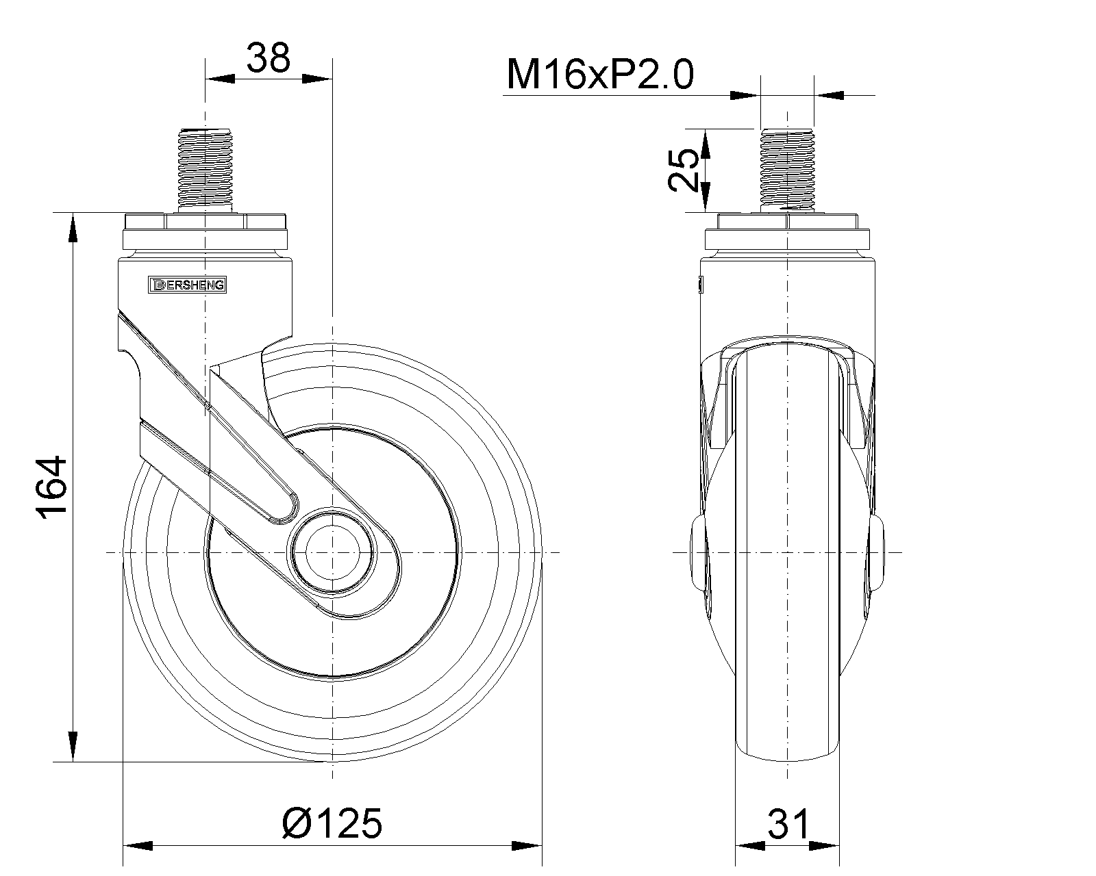 | (màu xanh xám)Đường kính bánh xe đầy đủ × chiều rộng bánh xe 125 x 31mm |