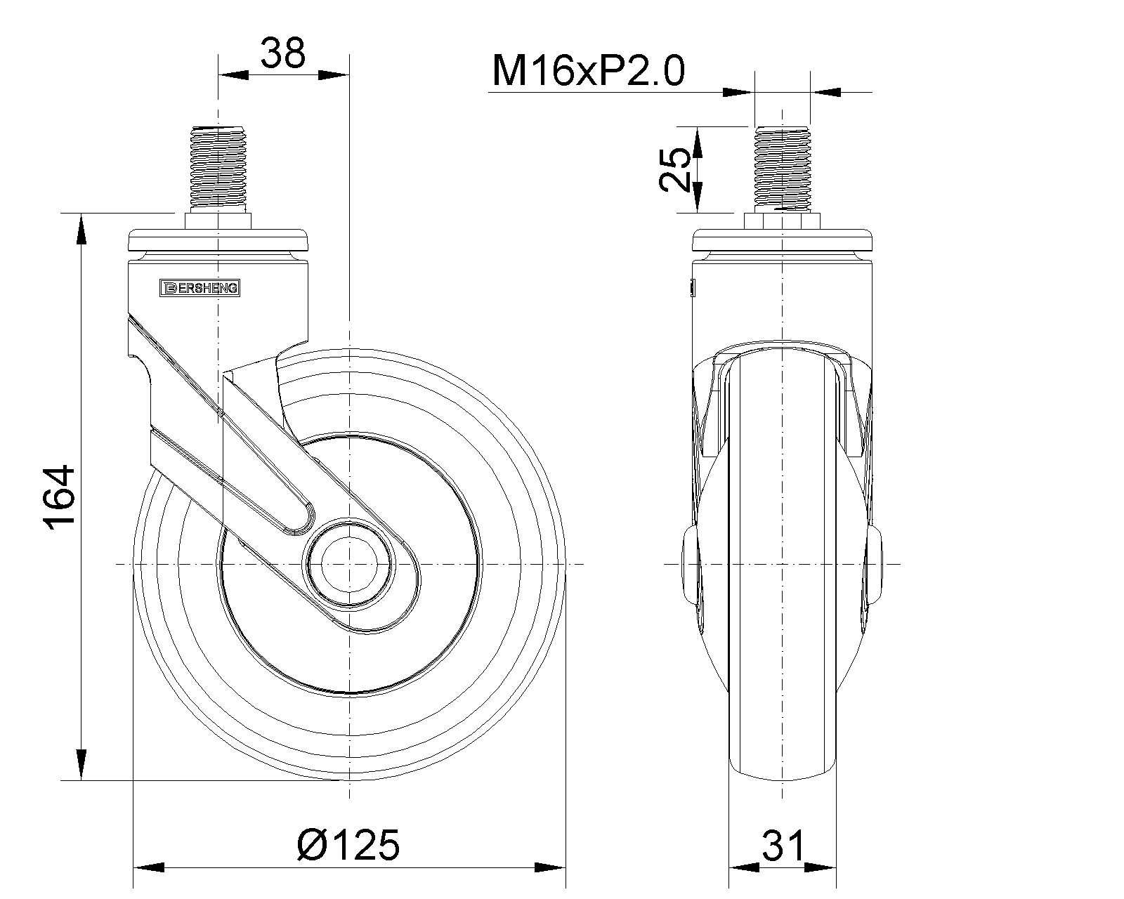 | (màu xanh xám)Đường kính bánh xe đầy đủ × chiều rộng bánh xe 125 x 31mm |