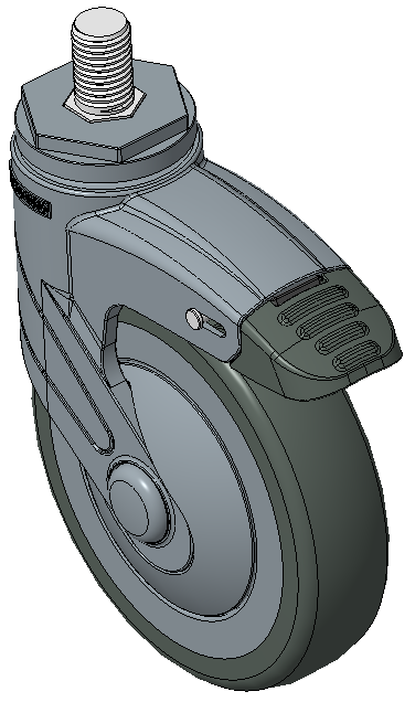 Bánh xe thật, ren M16x25 Chân màu xanh xám làm bằng cốt thép polyamide, lắp đặt bằng ren Chống gỉ, chống ăn mòn, thẩm mỹ, tiết kiệm và cho phép xoay trơn tru Lõi bánh xe bằng polypropylene chịu va đập, bề mặt bánh xe bằng chất đàn hồi nhiệt dẻo (TPR) Màu xám đậm, vòng bi bánh xe—vòng bi cầu chính xác |